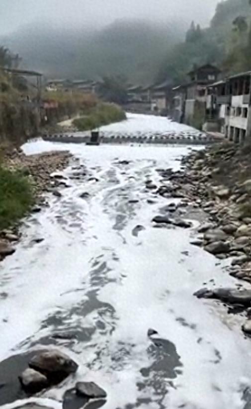 据此前报道,多段网友拍摄的视频显示,桂林市龙胜各族自治县龙脊镇金江河黄洛河段水面漂浮大量白色泡沫状物质,形成明显污染带并向下游扩散。知情人士透露,涉事企业为桂林长发小寨生物科技有限公司。该公司自投入生产以来,多次在夜间排放废水,次日清晨河道便布满白色泡沫,并散发出浓烈的香精气味,起风时在远处亦可闻到。