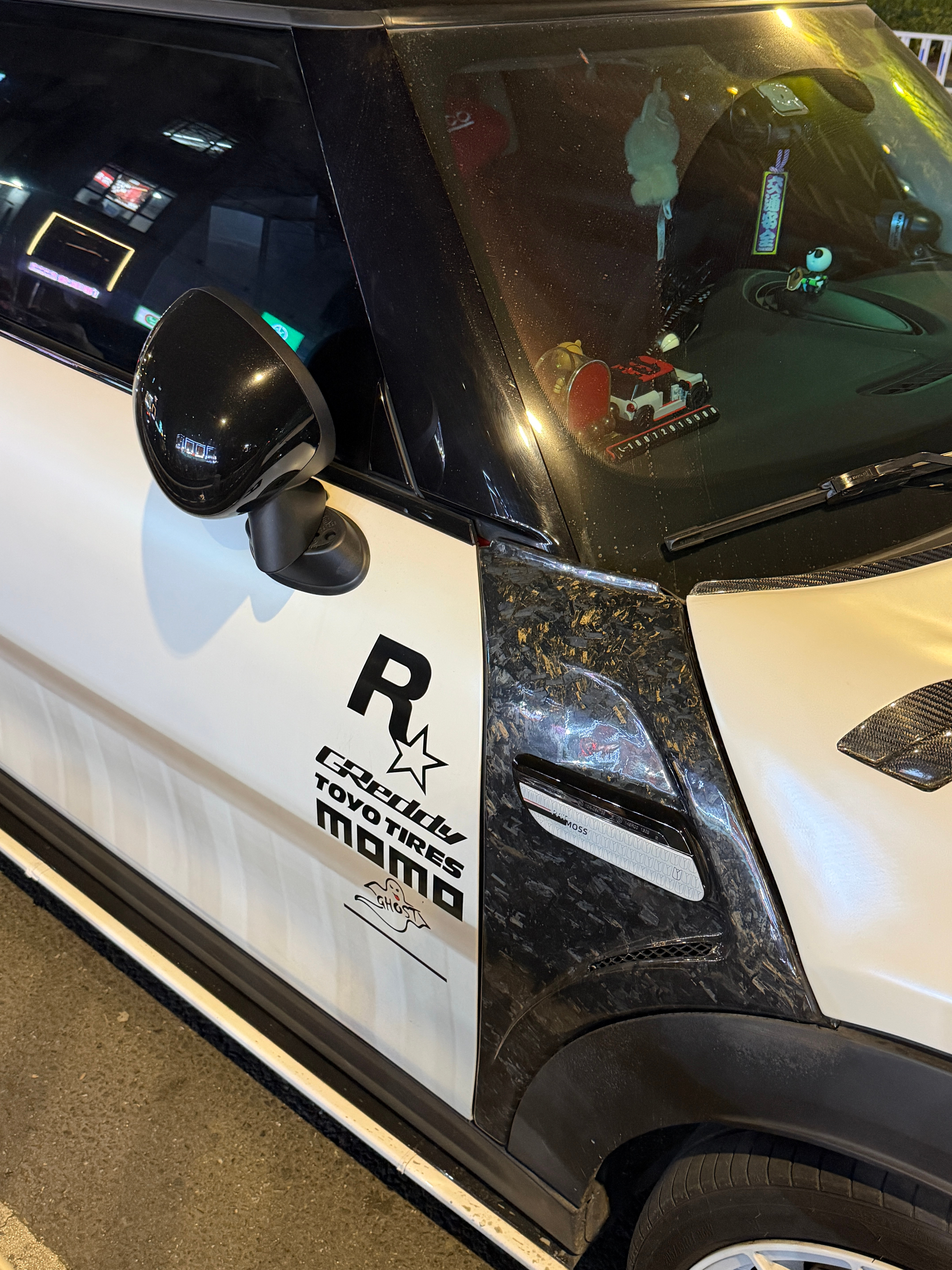 碰上一辆加装了DUEL AG PERFORMANCE改装套件的MINI赛道化改装设计增加了很多看点啊碳纤维进气口、运动化前包围……细节到OK气门也装上了哈哈哈