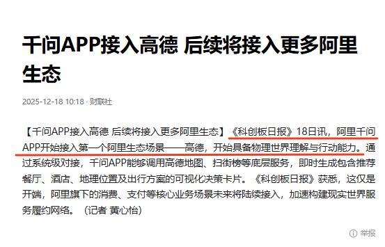 国内在这一领域的动作越来越密集了,印证一场大变革正在到来! 据不完全统计,截至目前,至少有16个省份(包括直辖市、自治区)在其“十五五规划建议”中提到人工智能布局。 比如上海将AI大模型应用纳入“十五五”核心规划,广州则是重点发展“人工智能+机器人”产业集群。 除了各省份城市之外,国内企业也在推动AI的落地应用。看到最新消息,阿里千问APP已经接入高德,让大家用一句话就能完成从地点推荐到行程规划,再到一键导航的出行全流程。 这些动作无不证明,AI就像二十多年前的互联网一样,开始慢慢地改变我们的生活了。可能这么说大家的感触还是不够深,虽然千问成为了一个能帮用户规划行程的超级入口,不用再辗转于各种APP,但相比于人们的衣食住行,这不就是一个很小的改变吗? 看起来是这样,可是大家想过没有,阿里的生态已经覆盖到了我们的衣食住行,今天千问接入的是高德,明天可能就会接入闪购、飞猪,直到覆盖我们生活的方方面面。 说白了,阿里是想让AI真正落地,改变我们的生活,当然阿里也有这样的技术实力。要知道,在AI模型上,阿里已经占据了领先地位,阿里千问模型全球下载量已经超7亿,衍生模型数量突破18万。 在这股势头下,英伟达、微软、亚马逊等科技巨头、顶尖企业都在选择与阿里AI合作。不仅如此,在阿里千问宣布全面进军C端市场,开启千问APP公测之后,势头同样丝毫不减。 公测一周时间,千问APP下载量突破千万,公测仅23天,月活用户突破3000万,成为全球增长速度最快的AI应用。 技术实力只是一方面,阿里身上更让我佩服的点是,阿里一直都在用技术改变人们的生活,像帮助残障人士出行的轮椅导航、用于癌症筛查的AI医疗早筛技术。 如今阿里要用AI为社会带来更多的积极变化,让更多的普通人从中受益。