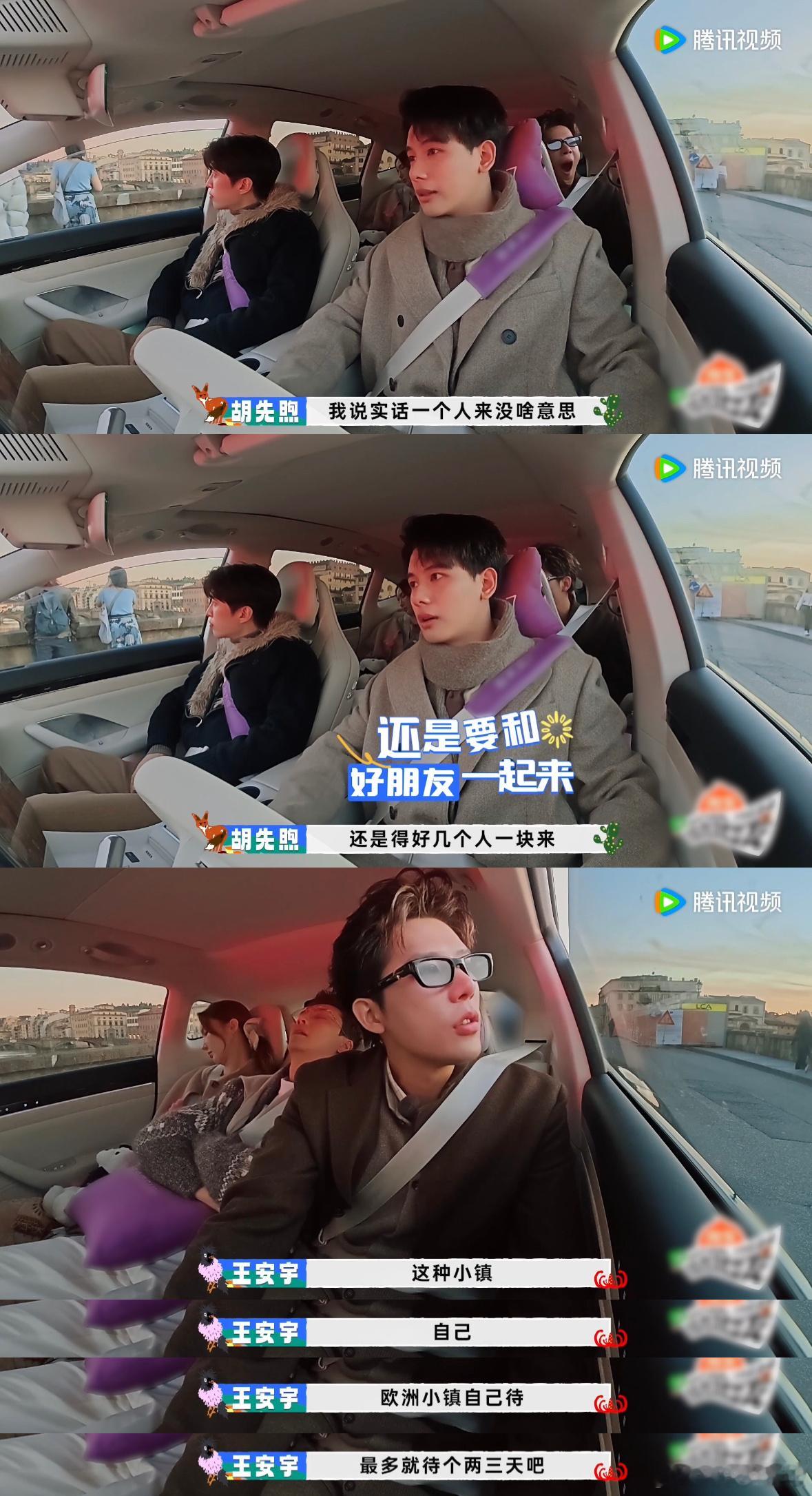 胡先煦王安宇在欧洲待不住现在就出发这几天小镇的日子过得有些慢,胡先煦和老王哥开始怀念与朋友共度的热闹时光。安宇回想起时装周的喧嚣,不禁觉得这样的静谧反而让人有些不适应。