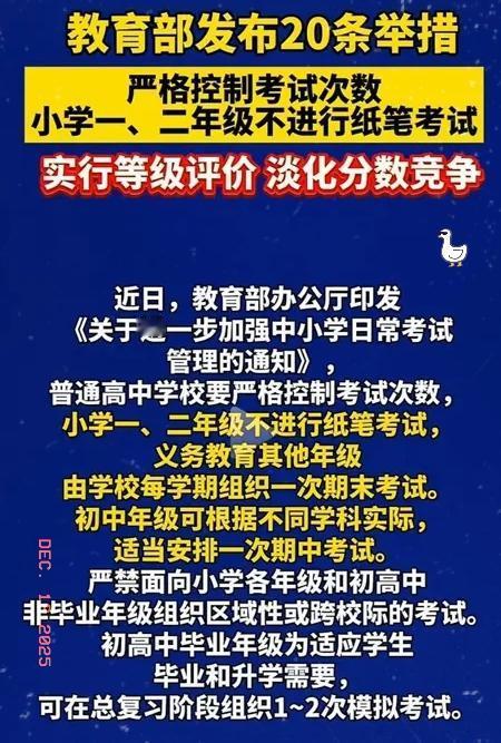 家人们!教育部这波减负新规太戳家长痛点,但光减考试次数根本不够,核心焦虑没解决啊! 一二年级不纸笔考试、不公布排名,看着是给孩子松绑,可中考高考的选拔门槛还在! 课堂教的基础题,考试偏考灵活拓展题,学考脱节的问题不解决,家长只会偷偷找私教、买资料! 内卷从明面上转到地下,孩子更累,家长钱包也遭罪!其实大家焦虑的不是考试本身,是怕孩子输在升学赛道,怕未来没稳定出路! 减负的关键得是教考同步、资源均衡,光堵不疏根本没用!你觉得这新规能真正给孩子减到负吗?教育减负 教育减负政策 教育减负新方案 小学教育减负 减负政策 初中生减负 减负真相