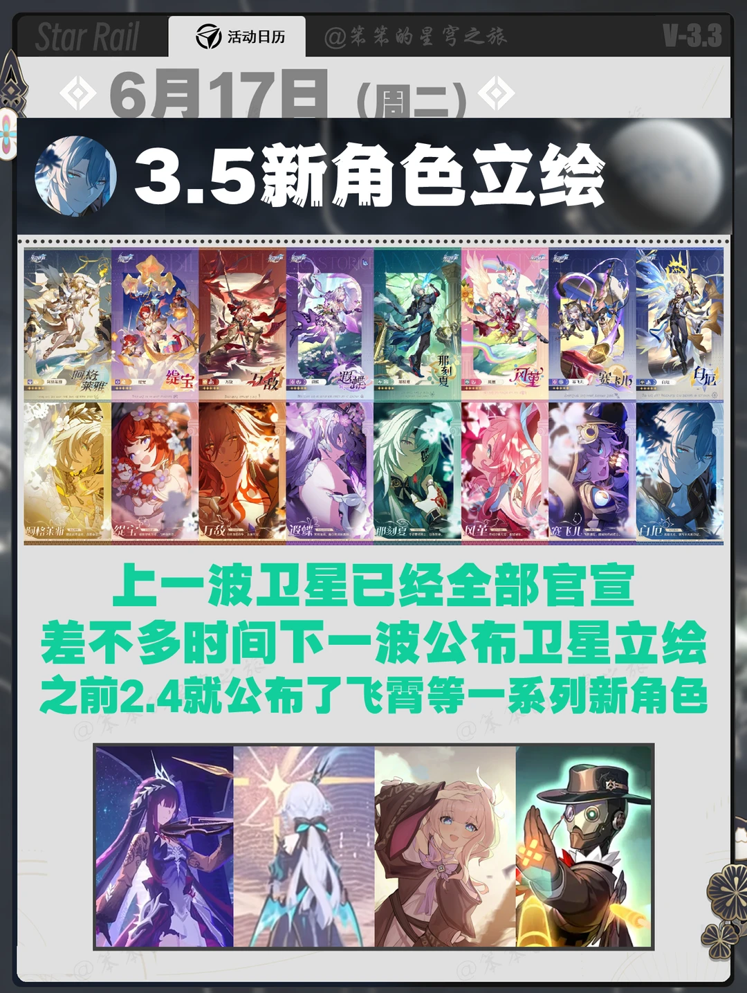 崩铁6月日历,新一波卫星角色立绘即将来袭