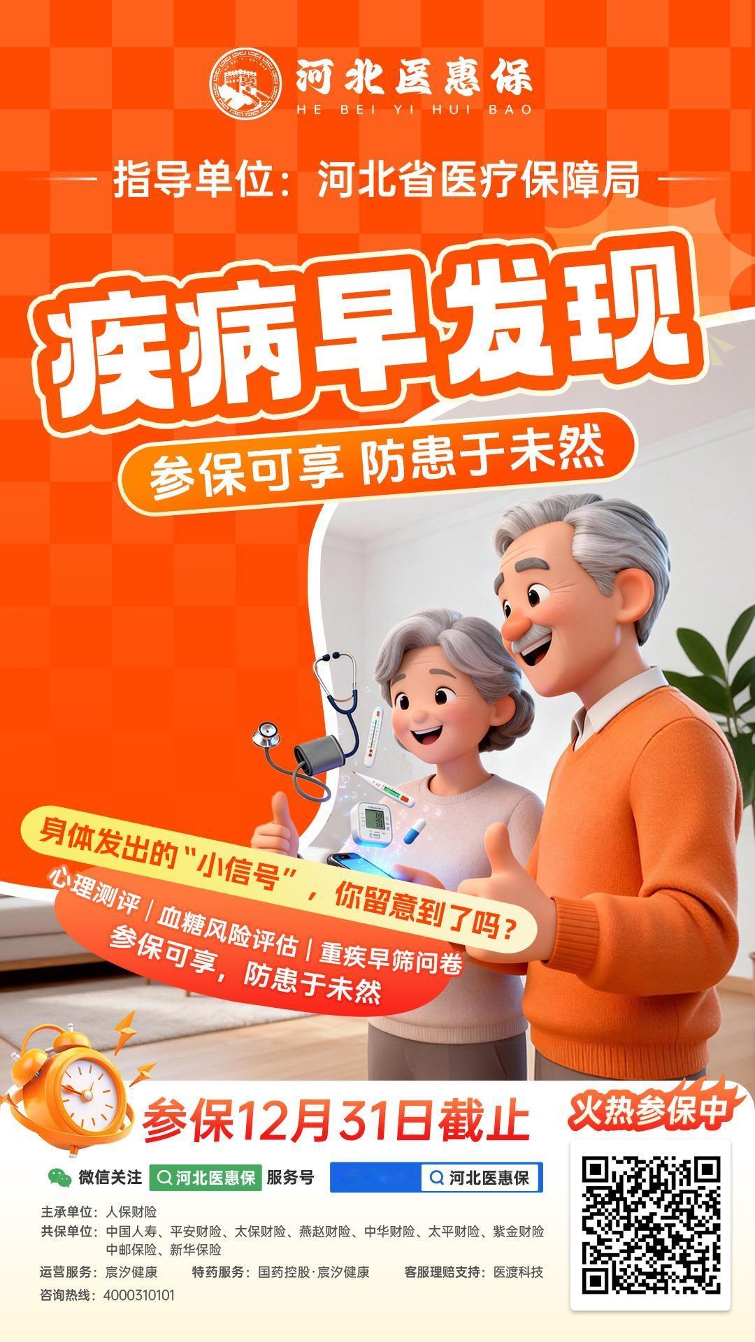 看病贵、用药难?河北人专属的普惠医疗保障——河北医惠保来护航!作为政府指导的民生工程,它与基本医保紧密衔接,用亲民保费筑牢健康防线,让每个家庭都能享受到坚实的医疗保障。 河北医惠保亮点十足,精准破解就医难题。报销比例诚意满满,医保内住院费用非既往症人群可报80%,医保外住院费用可报60%,95种全球特药及5种CAR-T前沿疗法费用更是0免赔80%报销,大幅减轻自费压力。保障范围广泛全面,不仅覆盖全省二级及以上公立医院普通部住院费用,还涵盖医保目录内外费用,国内海外特药全囊括,无论是日常住院还是重疾治疗,都能获得保障。保障额度高达600万元,五大保障责任叠加,彻底告别“大病致贫”的担忧。 更贴心的是,参保门槛极低,不限年龄、职业、健康状况,带病也能保能赔,新市民凭异地医保也可参保。保费分段定价普惠透明,最低每年99元就能锁定全年高额保障,全家参保更安心。理赔无需跑腿,逐步实现出院同步结算,真正省心省力。 重要提醒!2025年度河北医惠保参保通道即将关闭,截止日期为12月31日,错过再等一年!保障期覆盖2026全年,现在参保,就能为自己和家人的健康提前上锁。立即关注官方渠道参保,用一顿饭的钱,换一整年的安心,让河北医惠保成为你身边的健康守护者!@石家庄头条