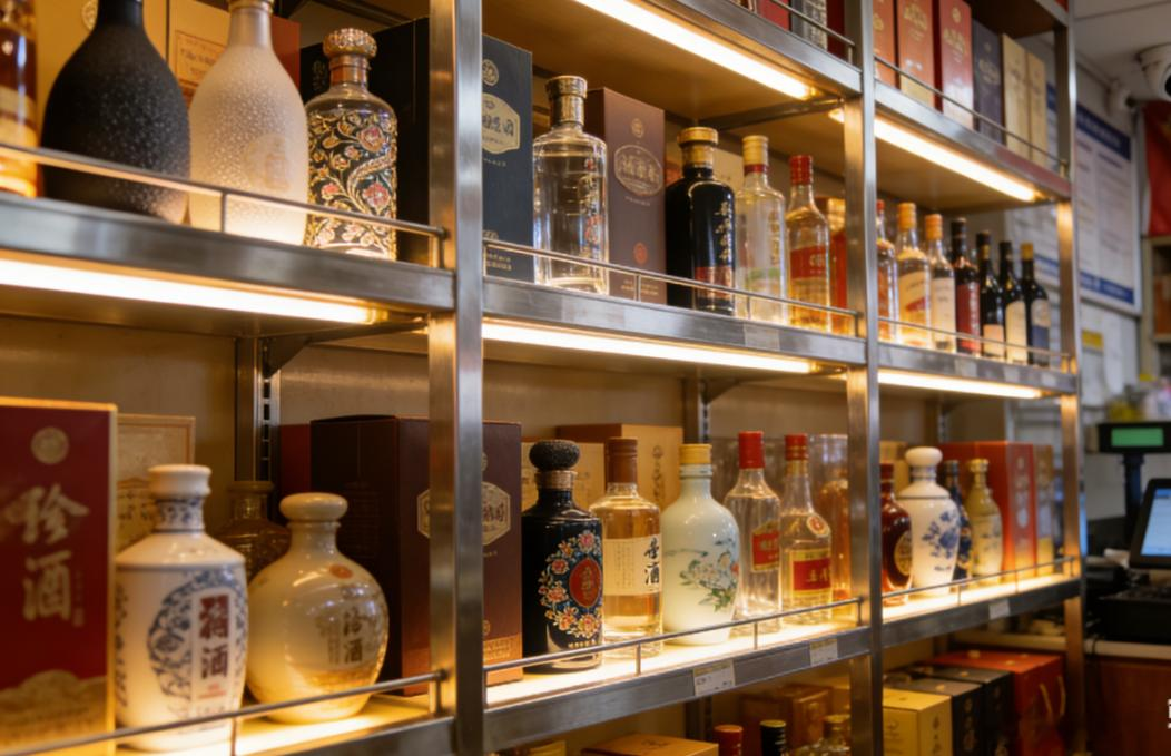 烟酒店有一个非常有趣的现象,一般那些来自外省的白酒,不管品牌知名度高低,往往都是被挤在角落,而最显眼的位置永远留给本地的“王者”。