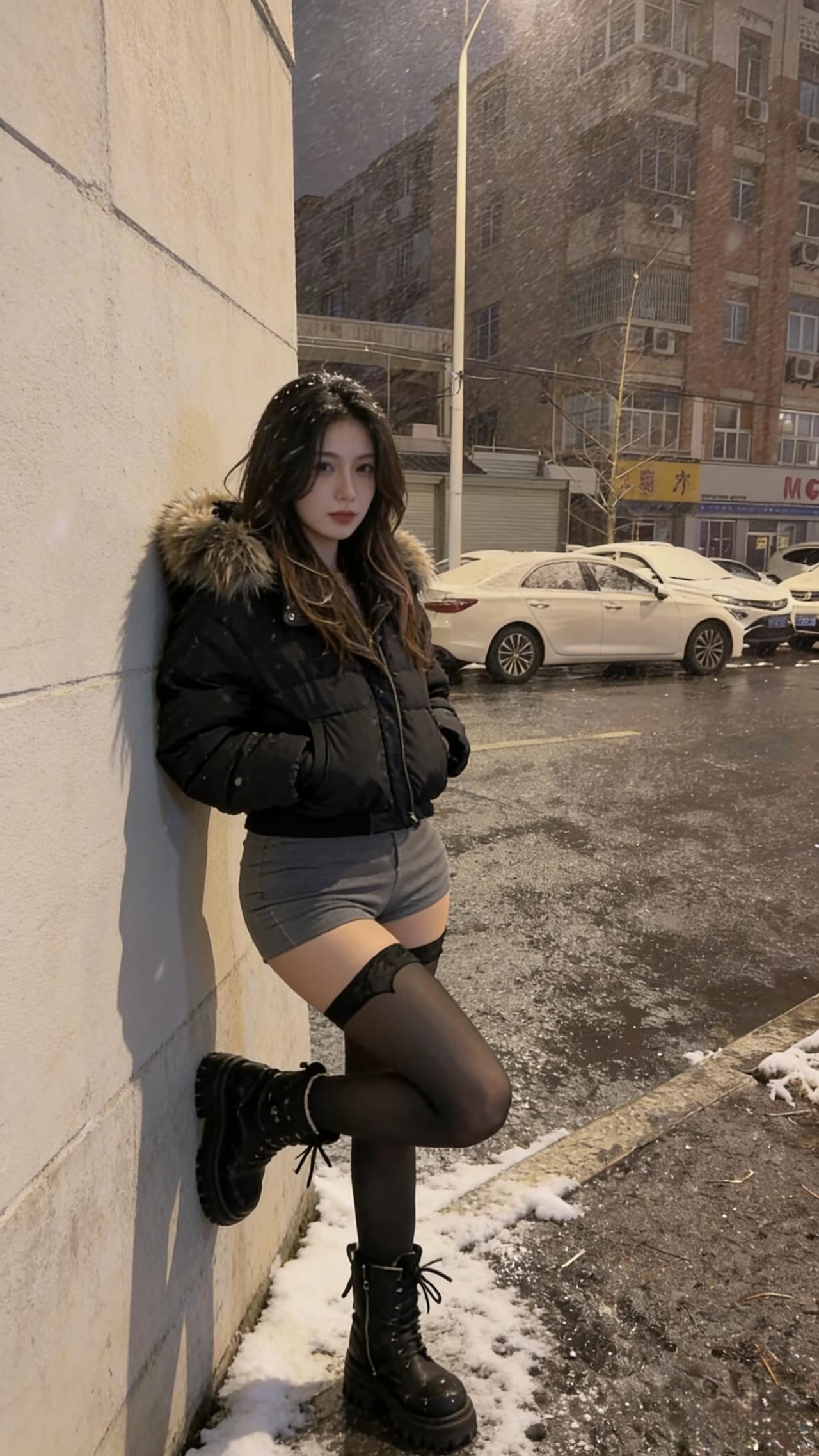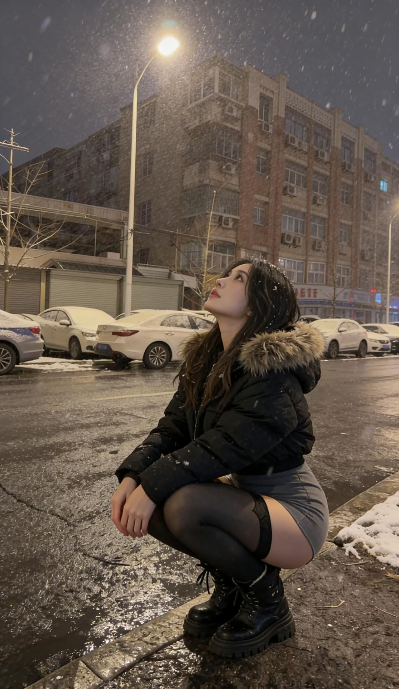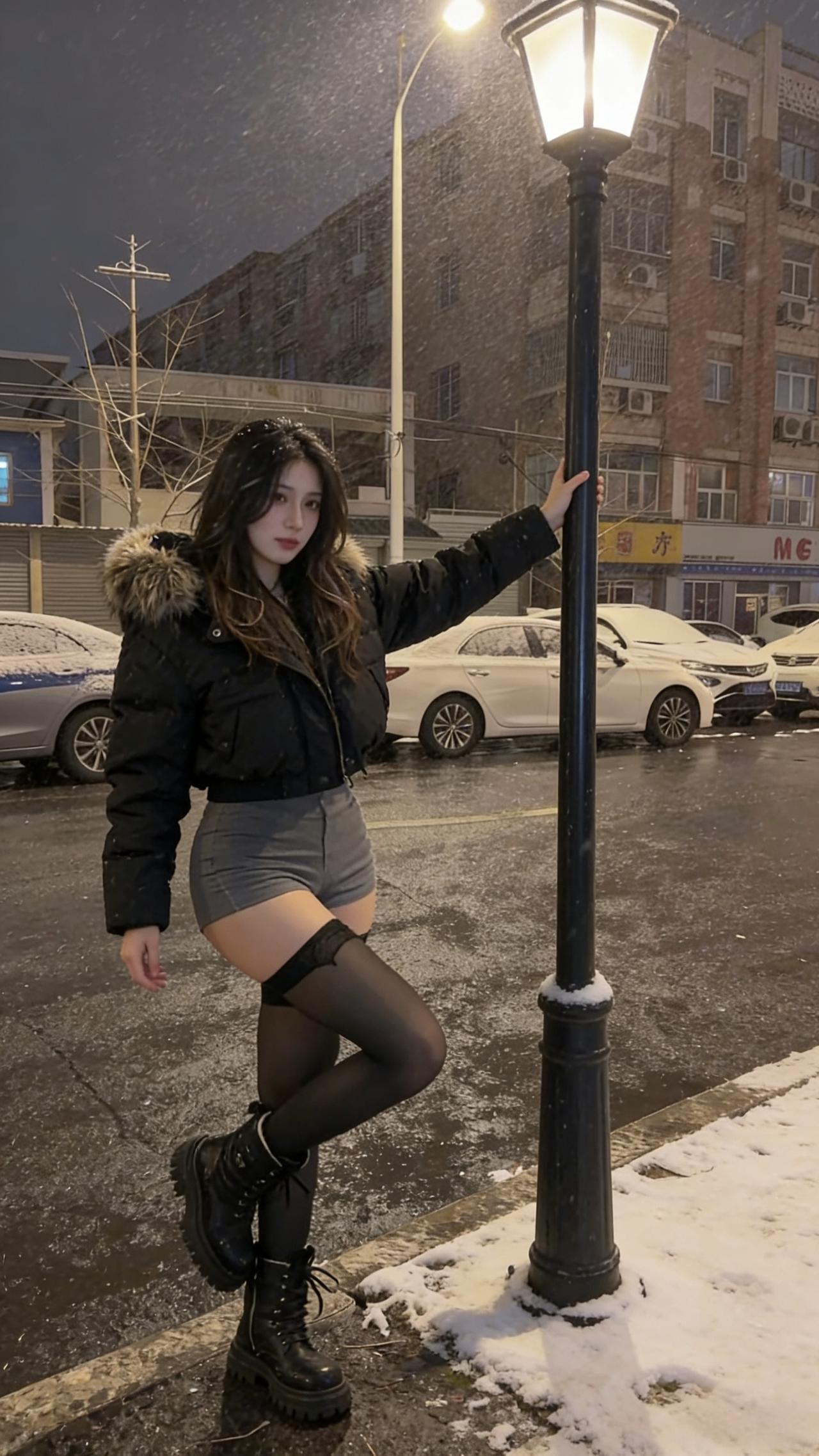 雪夜,孤独的街头,一切都静悄悄。。。冬日生活打卡季 黑丝袜美腿