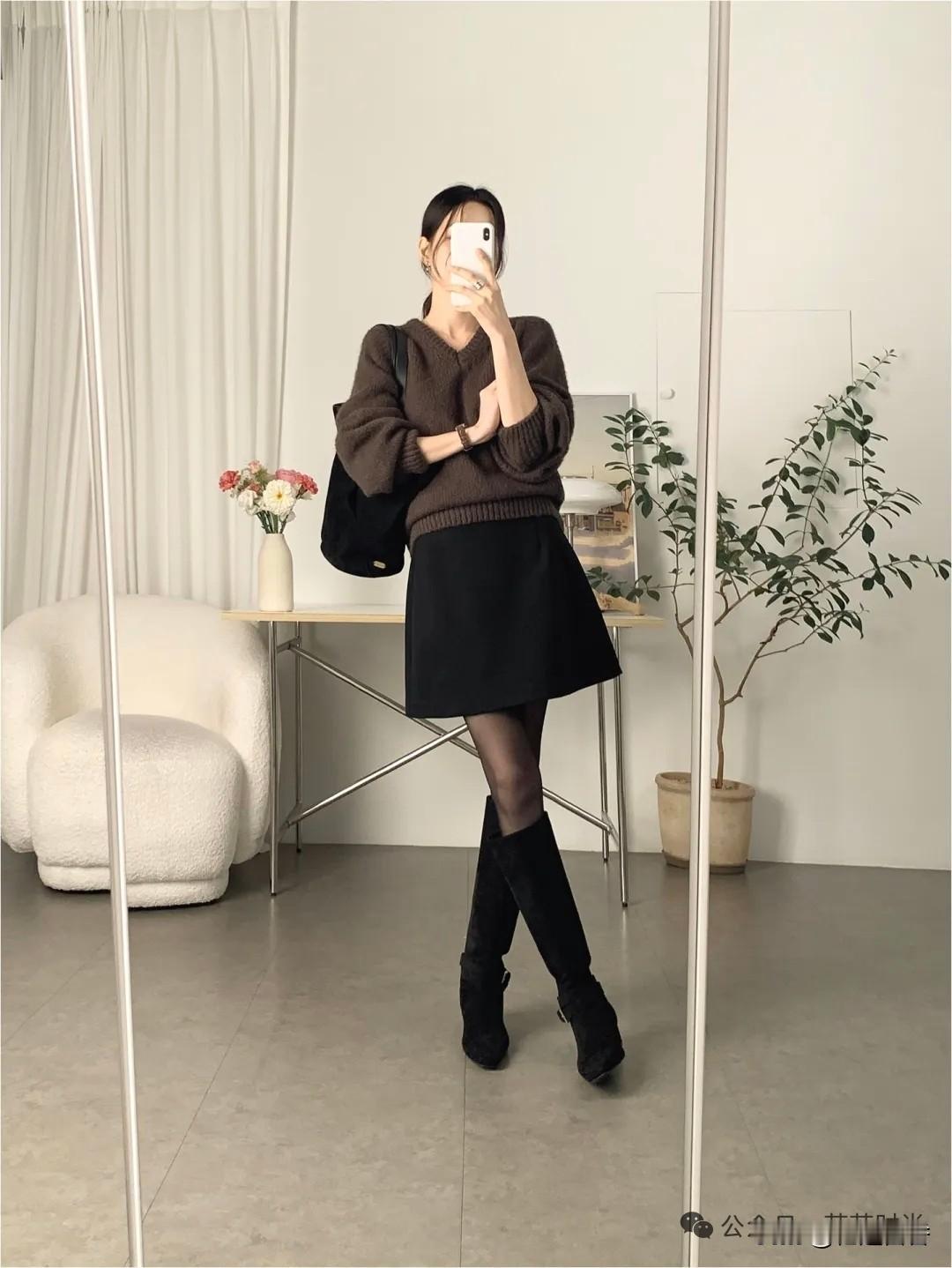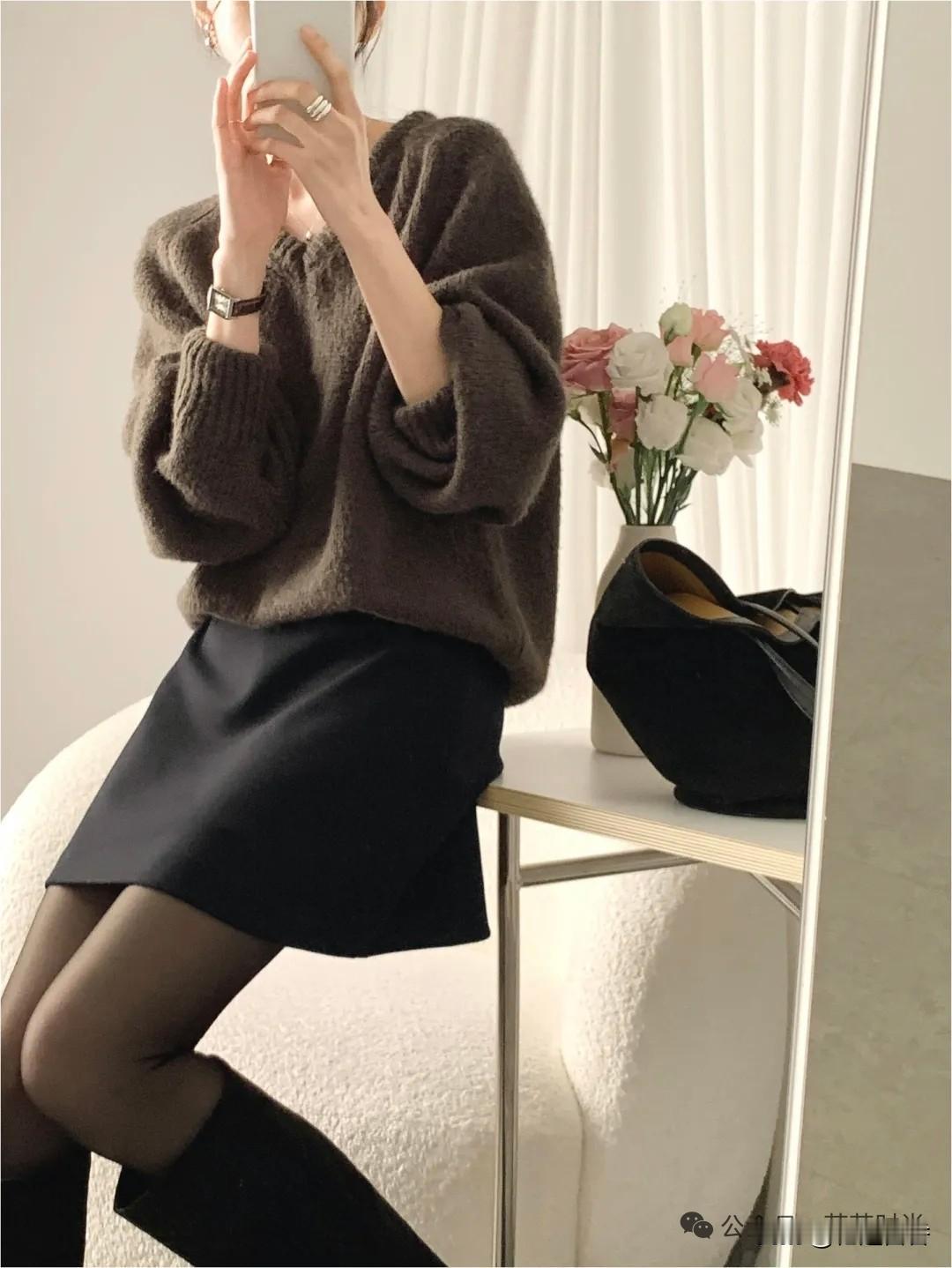 冬日穿搭指南:温暖毛衣+黑色短裙,轻松出街!🌟👗👠