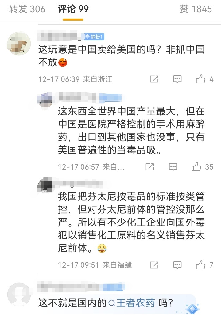 记录者 中国要是不严格控制所有“涉毒”的上下游原料及产品、使用流程及制度、规范人事及法律惩戒……不堪设想。另外,芬太尼现在对霉里贱已经不算啥了,对于霉里贱穷人来说它还是有点贵,现在有一种比它更便宜、更容易大规模生产、更嗨的替代品已经在霉里贱开始出现了!这玩意儿估计会彻底搞垮霉里贱!不信等着瞧吧。