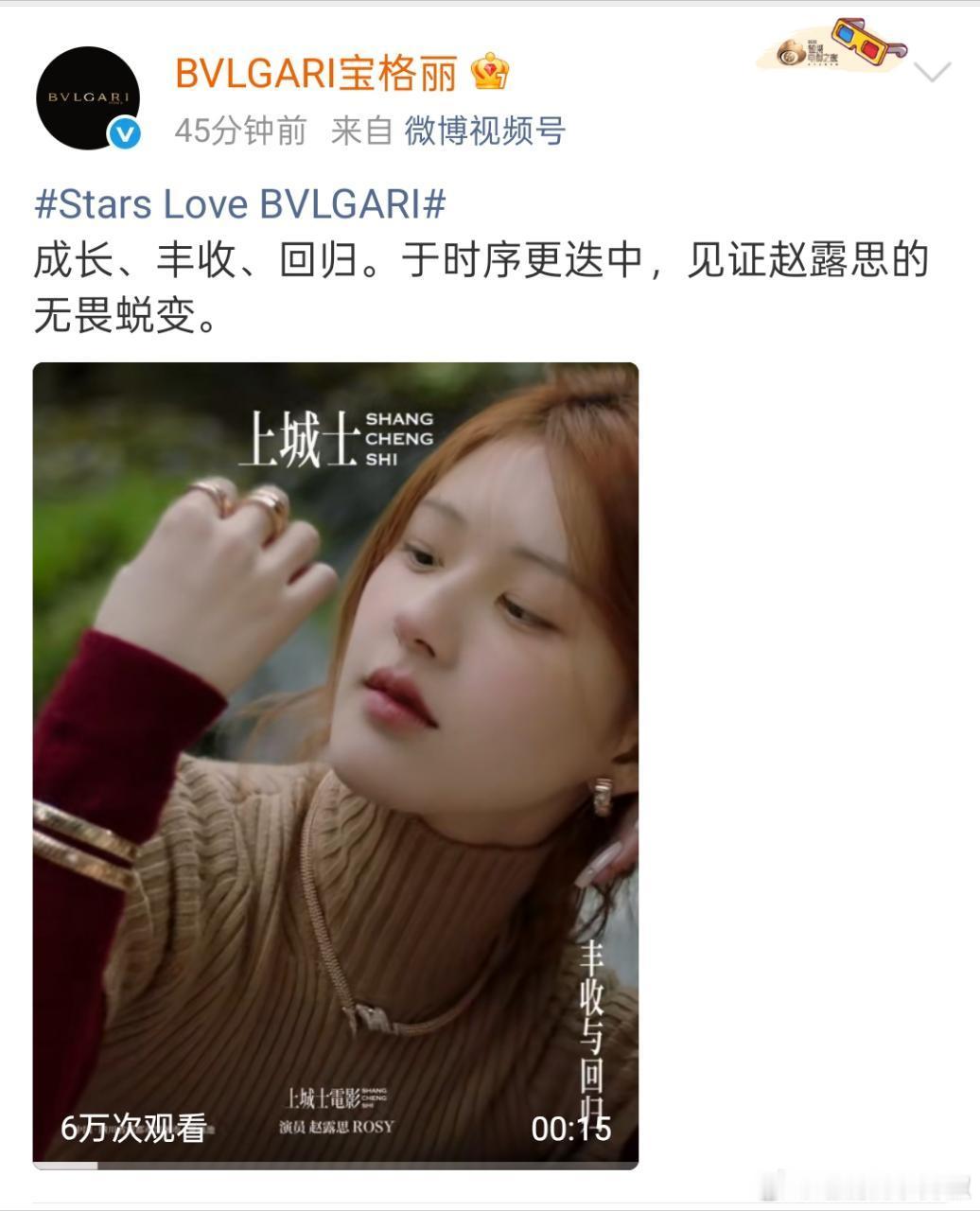 上城士闭年刊推封的宝格丽连续更新三条赵露思相关博,这就是爆剧🌸代言人的商业价值