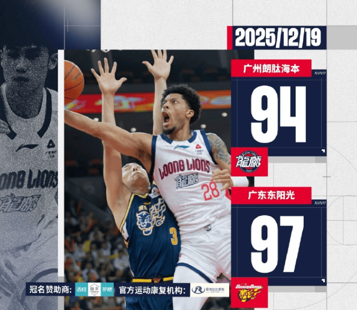 虎扑12月19日讯CBA常规赛,广东97-94战胜广州。