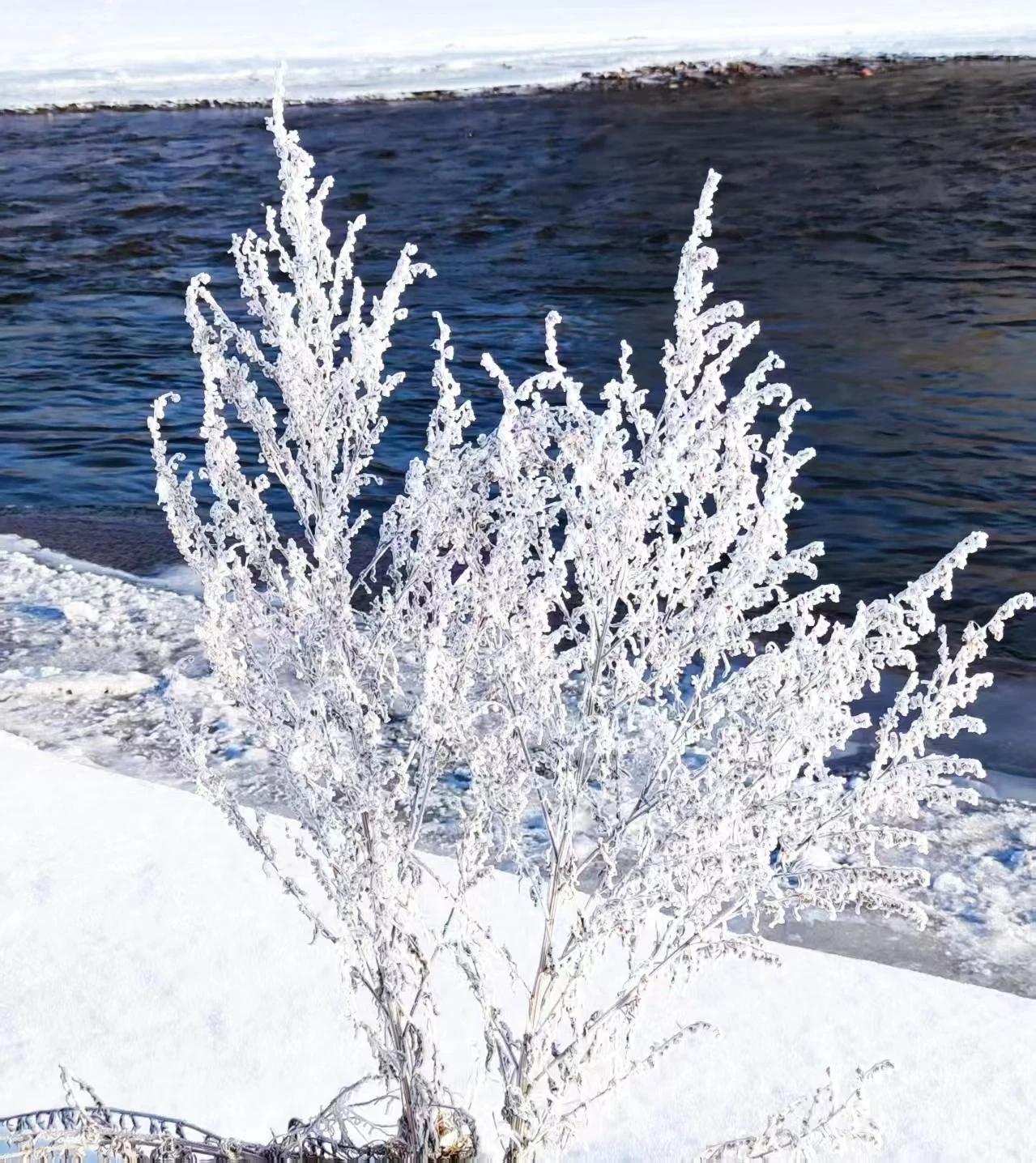 图里河畔雾凇美 摄影配诗书法/侯秉忠 茫茫银涛涌苍穹 壮丽盈目飞晶莹 玉树琼花书素雅 乳雾柳烟秀朦胧 晨风轻拂落星屑 粉蝶曼舞凌寒冬 自然天成美仙境 童话世界醉老翁