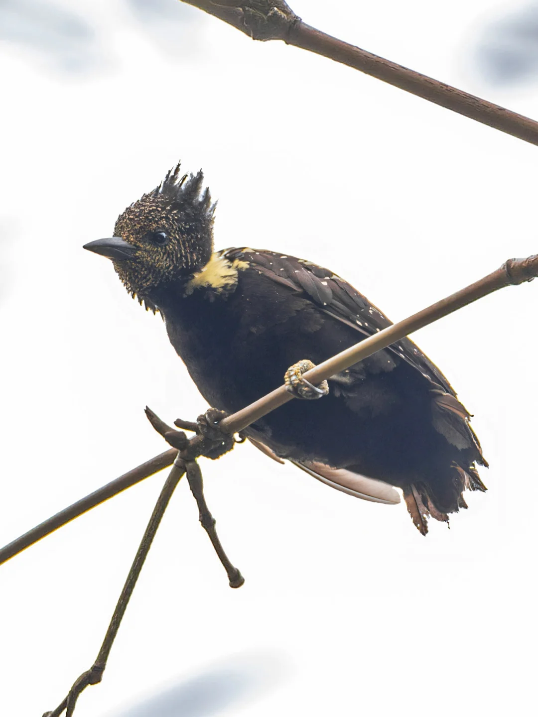 原创拍摄于2025.03 黑棕斑啄木鸟,Black-and-buff Woodpecker,䴕形目啄木鸟科斑啄木鸟属。是分布在中南半岛的小型啄木鸟。 黑棕斑啄木鸟黑白相间非常独特,三角形的顶冠尤其显著,使得头部看起来在远处比实际大很多,飞羽有一道白色至淡黄色条纹。 黑棕斑啄木鸟在东南亚多国有分布,但是数量不多,在越南吉仙可能相对稳定,在其他国家可算是不容易了。这次在泰国有幸看到,鸟导都直呼难得,就是太高啦哈哈哈。