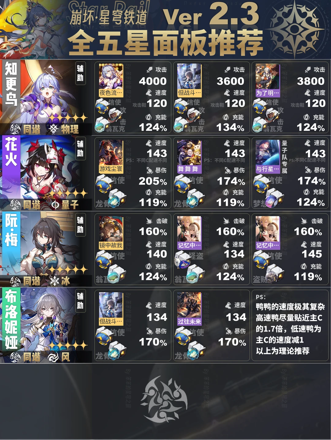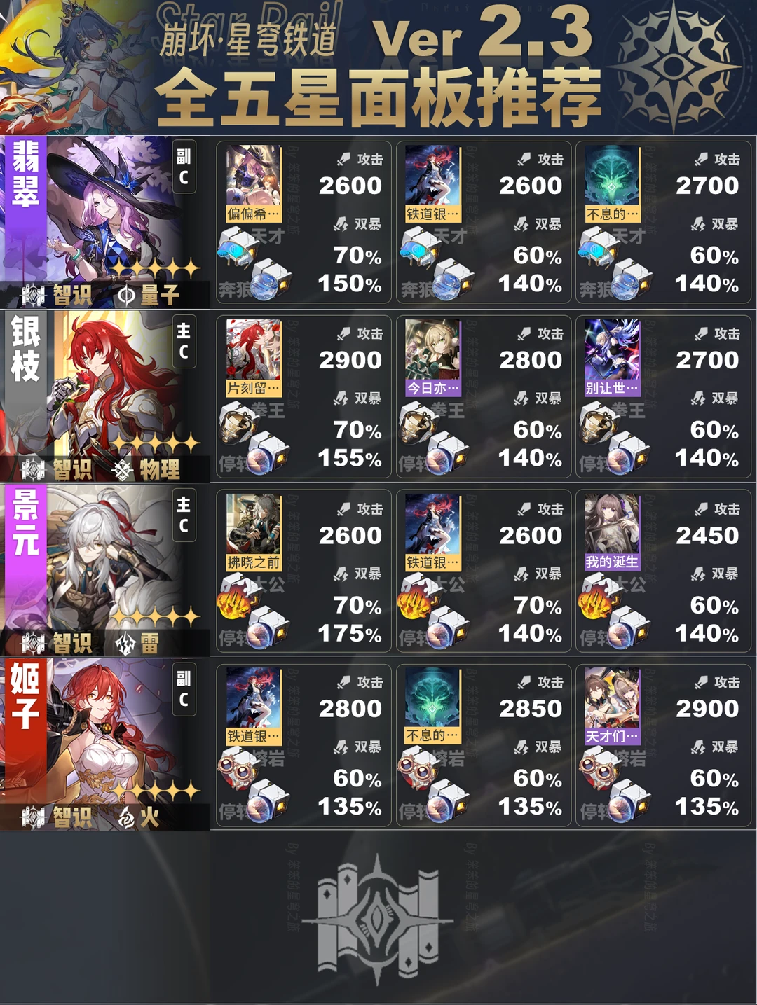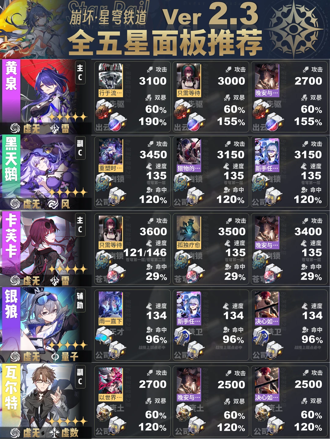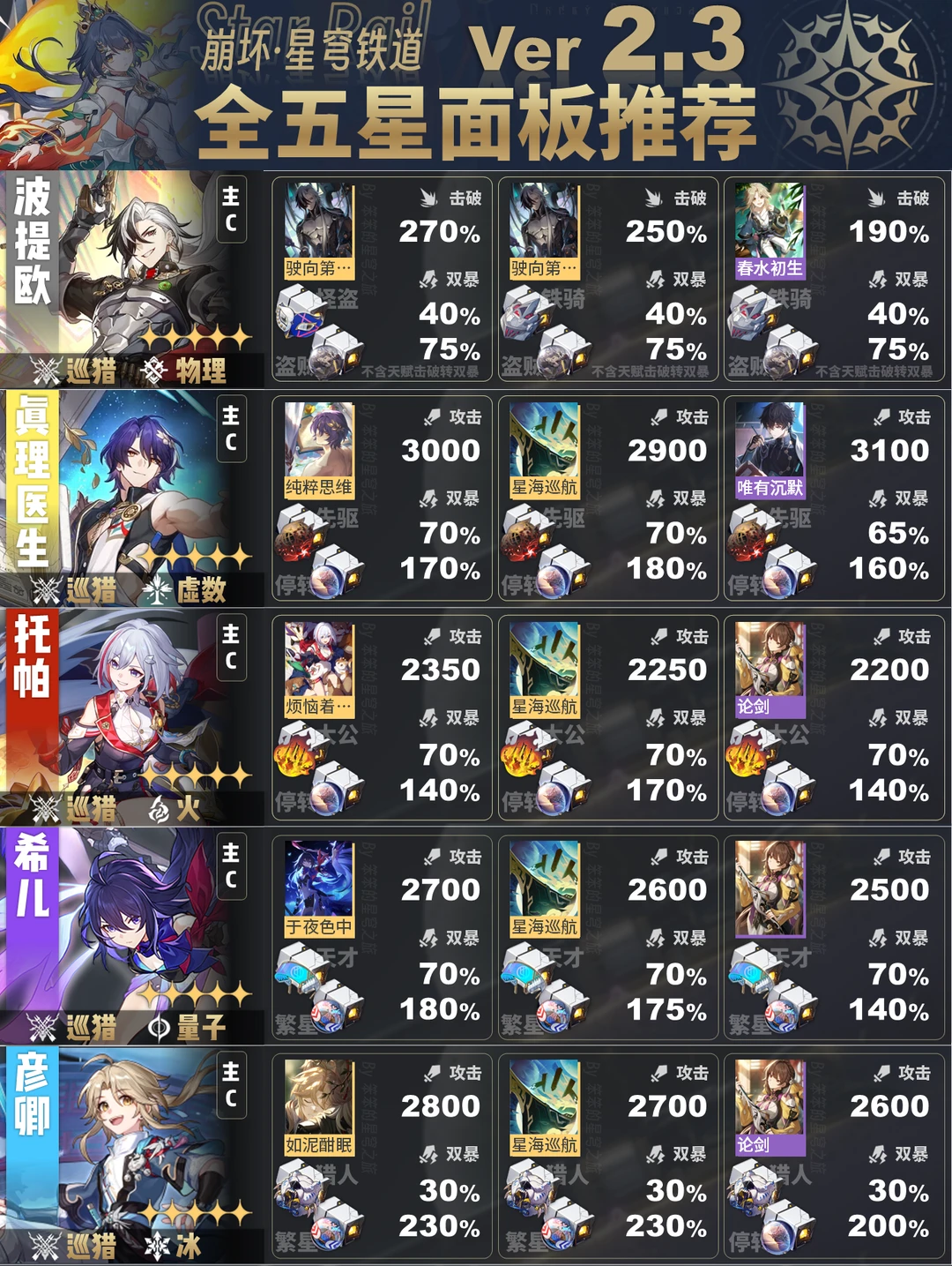 崩坏星穹铁道全五星角色的面板推荐