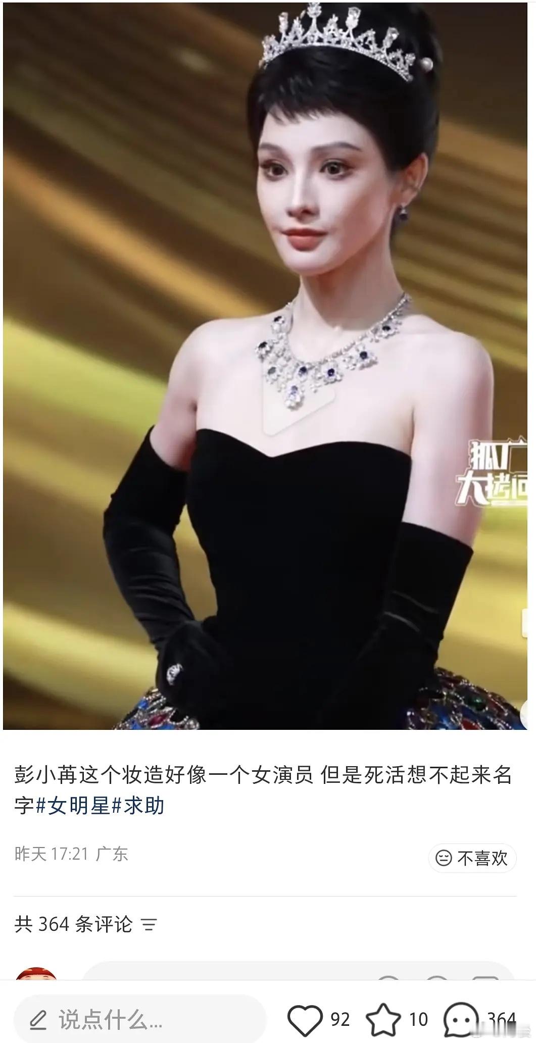 有网友说彭小苒这个造型像丁禹兮女装时候哈哈哈