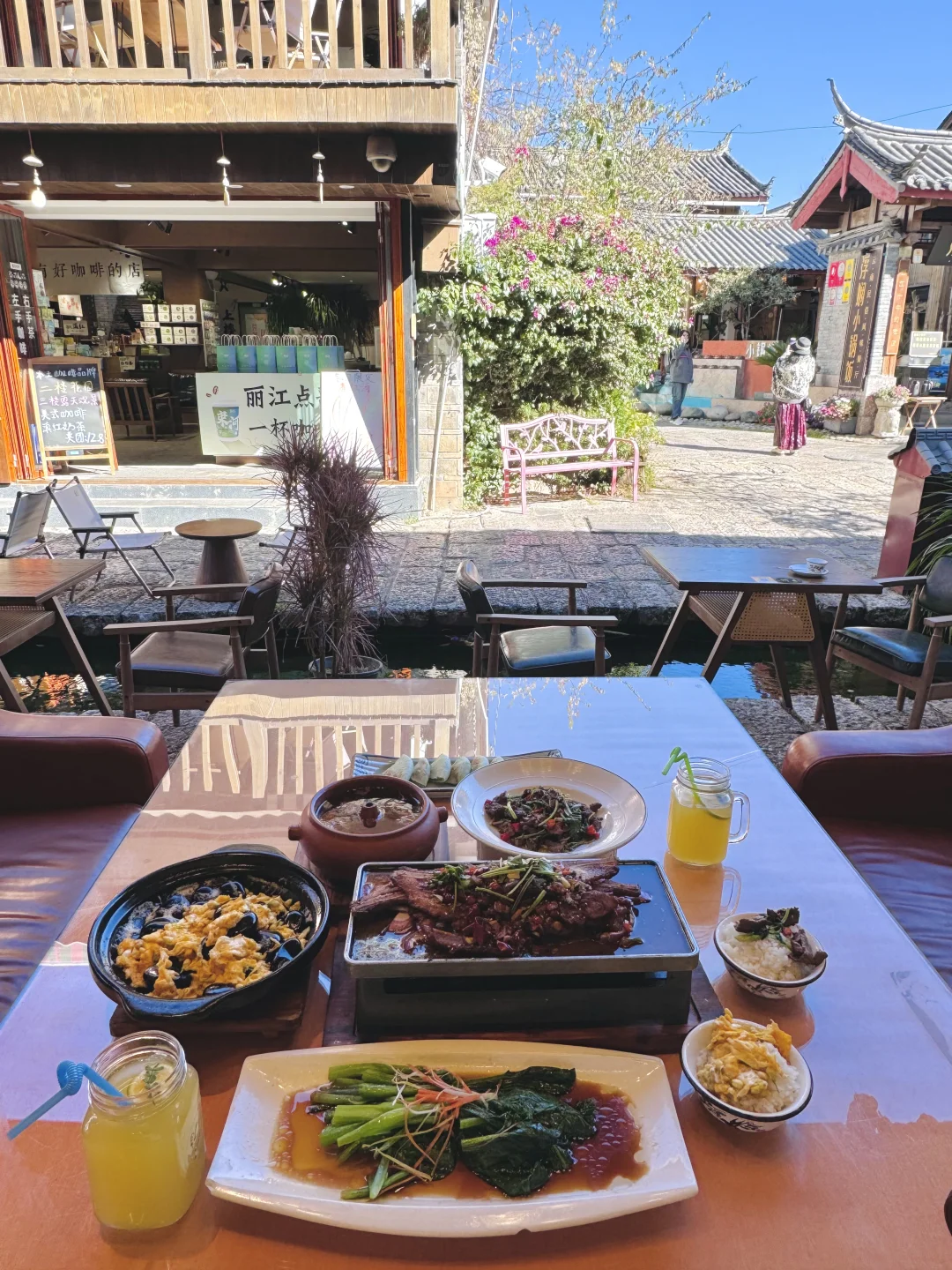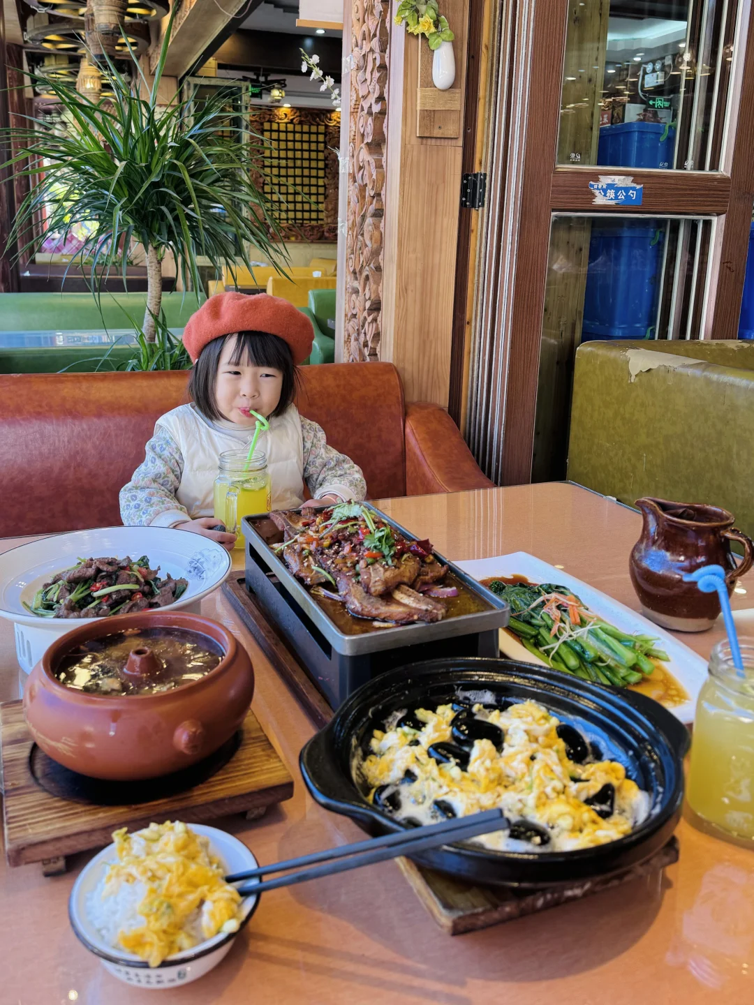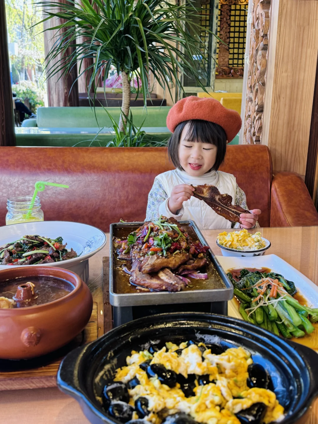 来束河古镇的 一定要记住这个位置呀! 它家的云南菜真的太好吃啦 看看我们一百的套餐真的划算哭了😭 犹豫吃什么的 直接选套餐就行 纳西手撕排骨重点推荐下 茉莉花鸡蛋碰石头很有有意思 我闺女好爱吃! 餐厅环境也是没话说 被花花包围着吃饭真的太幸福了吧 📍滇选云味·云南民族餐厅