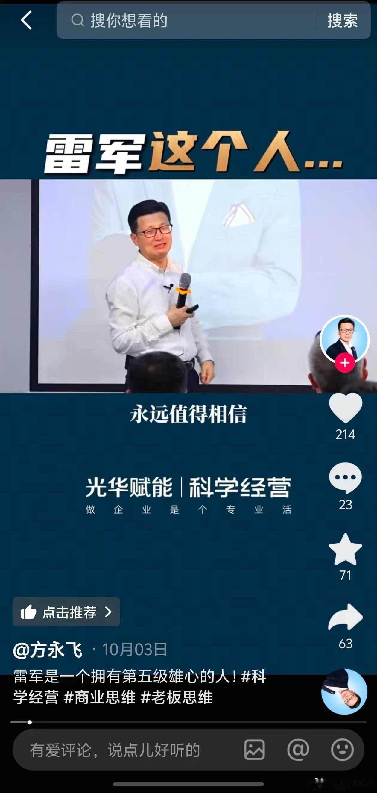 方永飞言论反转被指蹭流量这个人真是抽象,之前力挺雷军夸雷军,估计也是为了流量吧,看流量不行,又转头黑小米和雷军,路径依赖了。反正为了流量可以不要脸,白的硬说成黑的,要么断章取义,要么凭空捏造,很多小米和雷军没说过的话也要硬安到别人头上,我真不理解什么人能信这个。至于“浙大主讲教授”的身份也不是正式教授,顶多去外聘授过课或者做过报告。再说了听这种人做报告那不是听垃圾么。方永飞非浙大正职教授