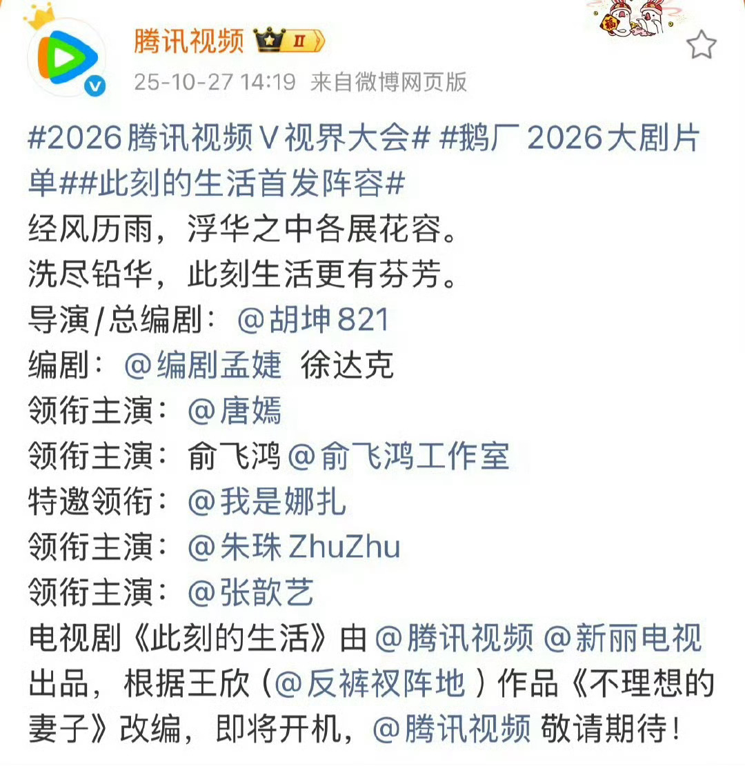 唐嫣、俞飞鸿、古力娜扎、朱珠、张歆艺、彭冠英此刻的生活今日开机