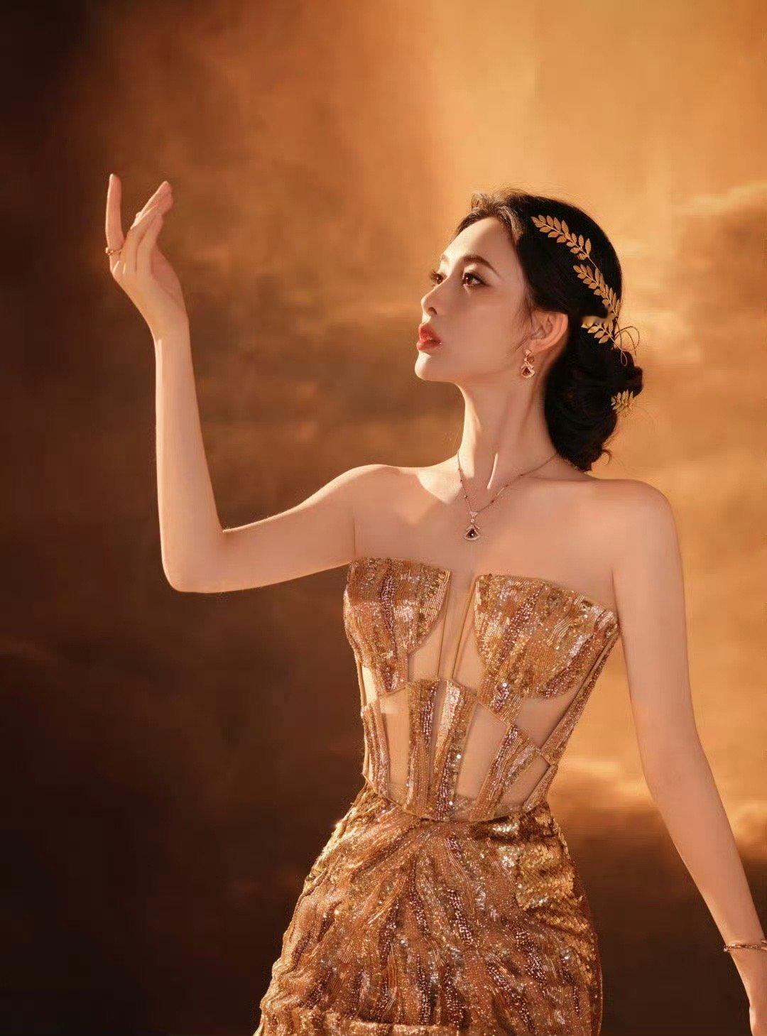 孟子义星光大赏出图🈶,高定礼裙,鎏金加身,孟子义穿出了独一无二的女神气场孟子义鎏金女神星光大赏