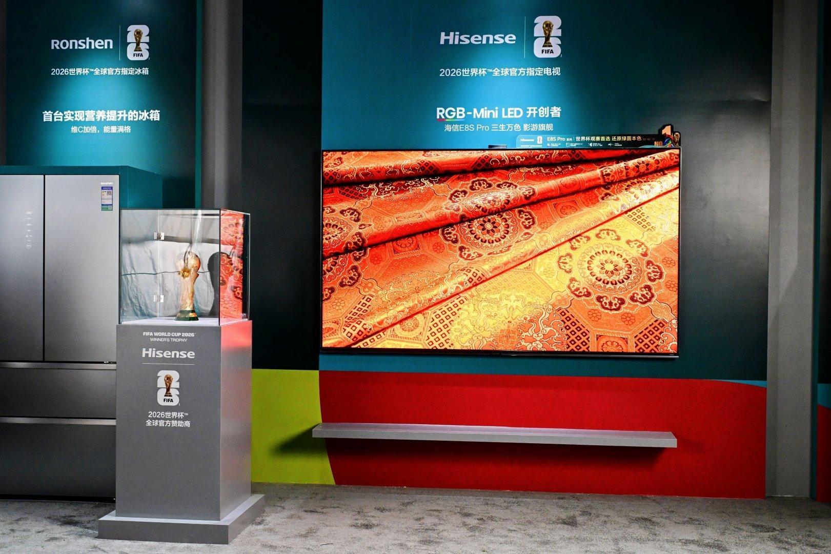 海信世界杯定制产品亮相 世界杯的脚步声已经越来越近咯!12月21日,作为2026年美加墨世界杯全球官方赞助商的海信,将大力神杯带来国内,组成了最多人组成的大力神杯图形,一举创造了新的吉尼斯世界纪录。三度和国际足联FIFA携手,海信此次为世界杯特地定制了全套产品:116吋海信RGB-Mini LED电视,采用全球领先的RGB-Mini LED背光芯片,全真呈现赛场色彩,用三倍清晰、三倍酣畅的顶级观赛体验大饱球迷眼福。海信激光电视,使用可卷曲的凌云卷幕系统,打造绝佳氛围感,升起屏幕即是现场,收起即成艺术品。海信大力神空调和真空冰箱,让你的熬夜看球的日子不再辛苦,吃吃喝喝间,一起为喜爱的球队加油呐喊!