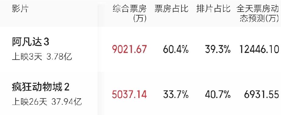 阿凡达3票房在中国不是很乐观,周五首日上映没破亿,第二天一万六,今天第三天“疯狂动物城”就已经在后面紧追直赶了。 之前疯狂动物城第一天上映就两亿多,而且还是周三,到了第一周的周六,直接涨到了单日七亿多票房。按阿凡达3的口碑,肯定是达不到动物城的热度了。 卡梅隆本来还准备了第四和第五部,但是太烧钱了,如果亏本肯定就不拍了。 阿凡达 3