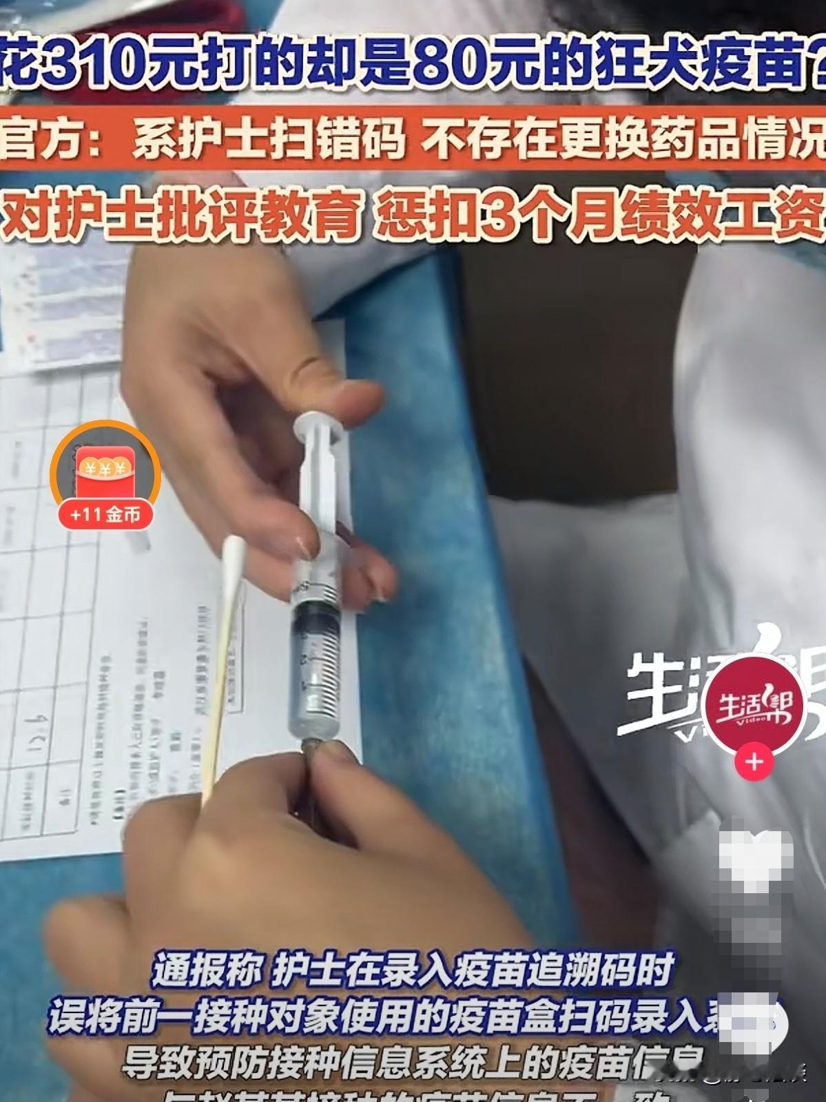 贵州,一男童被狗咬伤,家长赶紧带着孩子去打狂犬疫苗,为了安全起见,选择了310元的针剂,没想到,护士录入的是80元一针,家长发现不对劲,怀疑他们调换药品,立即质问对方,护士吓得不轻,意识到问题的严重性,赶紧核查,才发现是录入错误,针剂没有错。但这种解释,根本无法打消家长的猜虑,随后报警! 12月17号下午,陈女士的儿子在楼下玩耍时,不慎被狗咬伤,胳膊和手上留下几道血印子,吓得哇哇直哭。 当时老人在身边,一转身的功夫发生意外,心疼得直跺脚,狂犬疫苗得赶在24小时内打才管用,多耽误一分钟都不行。 老人也顾不上多想,抱着孩子就往附近的卫生服务中心跑,就怕错过了最佳接种时间,耽误事。 这边陈女士夫妻俩在外面办事,一接到老人的电话,赶紧推掉手里的事,火急火燎往回赶。 就想快点看到孩子,确认孩子没事。可等她俩赶到,孩子已经打完疫苗,在老人怀里,按着被打针的胳膊,看着就让人心疼。 当时老人特意打电话询问,狂犬疫苗分两种,一种是310元一针的,副作用小,预防效果好,一种是80元,效果略微差一些。 陈女士特意跟老人交代清楚,一定要给孩子打310袁一针的狂犬疫苗。 贵点没关系,一分钱一分货,这款疫苗效果好,副作用还小,给孩子用着才能放心。 陈女士看到孩子心才落了地,又想起疫苗的事,她赶紧找老人要孩子的预防接种单,想确认一下疫苗的情况。 可这一看不要紧,当场就气炸了,单子上写的狂犬疫苗,根本不是他们选的那款310元的。 而是另一种便宜的80元一针的,里面还包含了20块钱的注射费,一共100元。 陈女士气不打一出来,这到底是怎么回事?我们明明选的贵疫苗,怎么就变成便宜的了? 她拿着接种单,怒气冲冲地找到服务中心的医务人员,当场就讨要说法。 可面对陈女士的质疑,医务人员吓得不轻,支支吾吾,半天说不出一句完整的话。 赵女子心里直打鼓,脑子里全是吓人的念头:万一真打错疫苗,防护没效果咋办? 要是孩子出不良反应,甚至染上狂犬病,那后果根本不敢想! 他凑到接种台想拿空疫苗盒核对,被护士拦下,说医疗垃圾得统一处理。 要求查疫苗出库记录,工作人员又说没权限,只给看了模糊的登记界面,连疫苗批次号都看不清。 她掏出手机想拍登记信息留证,又被医护人员制止,双方一争执,引来了不少患者围观。 赵女士越想越后怕,掏出缴费凭证,一遍遍质问:我花310块就是想给孩子最好的保护,你们现连疫苗对不对都证明不了,叫我怎么放心! 护士意识到问题的严重性,翻来覆去核对了半天,说录取时疏忽,扫码扫错了,一口咬定给孩子实际打的还是那支310块的疫苗。 这样的解释,陈女士怎么能相信,不能你说没错就没错。 她选择报警,又打了监督部门的投诉电话,就盼着第三方介入,把疫苗接种的事查明白。 她在服务中心守到傍晚,直到相关部门工作人员赶来,心里才稍稍踏实了点。 很快调查结果出来了:不是换了疫苗,是当班护士操作失误,把前一位患者的低价疫苗追溯码扫错进了系统。 服务中心负责人出面道歉,当班护士被扣3个月绩效,主任和副主任也被通报批评、扣了绩效。 事儿虽查清了,但风波没平息。有人表示,理解家长的焦虑,这事谁摊上都心没底,孩子的安全无小事。 也有人表示护士不容易,难免失误犯错,人非圣贤孰能无过。 更多人觉得,基层部门的操作规范和核对流程,才是这场误会的病根! 涉事服务站,还给陈女士出具了一份承诺书,白纸黑字写得明明白白,承诺后续要是孩子因为打了这疫苗出现啥不舒服的反应,他们负全责。 可就算攥着这份承诺书,陈女士心里还是七上八下没个谱。 服务中心一口咬定是录入时疏忽出现错误,但到底给孩子打的是哪种针剂,她心里一直保持怀疑的态度。 《民法典》第1221条:医务人员在诊疗活动中未尽到与当时的医疗水平相应的诊疗义务,造成患者损害的,医疗机构应当承担赔偿责任。 ​ 狂犬疫苗接种直接关系患者生命健康,医务人员需尽到高度谨慎的诊疗义务。 包括疫苗选择核对、信息录入、凭证留存等全流程规范操作。 护士将前一位患者的低价疫苗追溯码误扫入系统,属于典型的操作疏忽,违反了疫苗接种的基本核对流程。 后续家长要求核查空疫苗盒、出库记录时,工作人员又以“医疗垃圾”“权限不够”为由推诿,进一步暴露了诊疗流程中的漏洞。 虽未造成实际人身损害,但已构成诊疗义务的违反。 这也是医疗机构需出具承诺书。相关人员被追责的法律依据,若后续孩子出现不良反应,家长可以主张赔偿。 对此,你怎么看呢? @静心法谈 学法辨是非,慬法不吃亏。