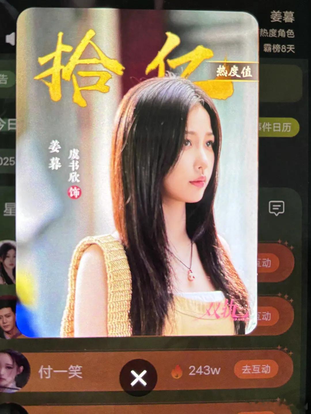 虞书欣“姜暮”角色热度破10亿,《双轨》剧超话钻三!