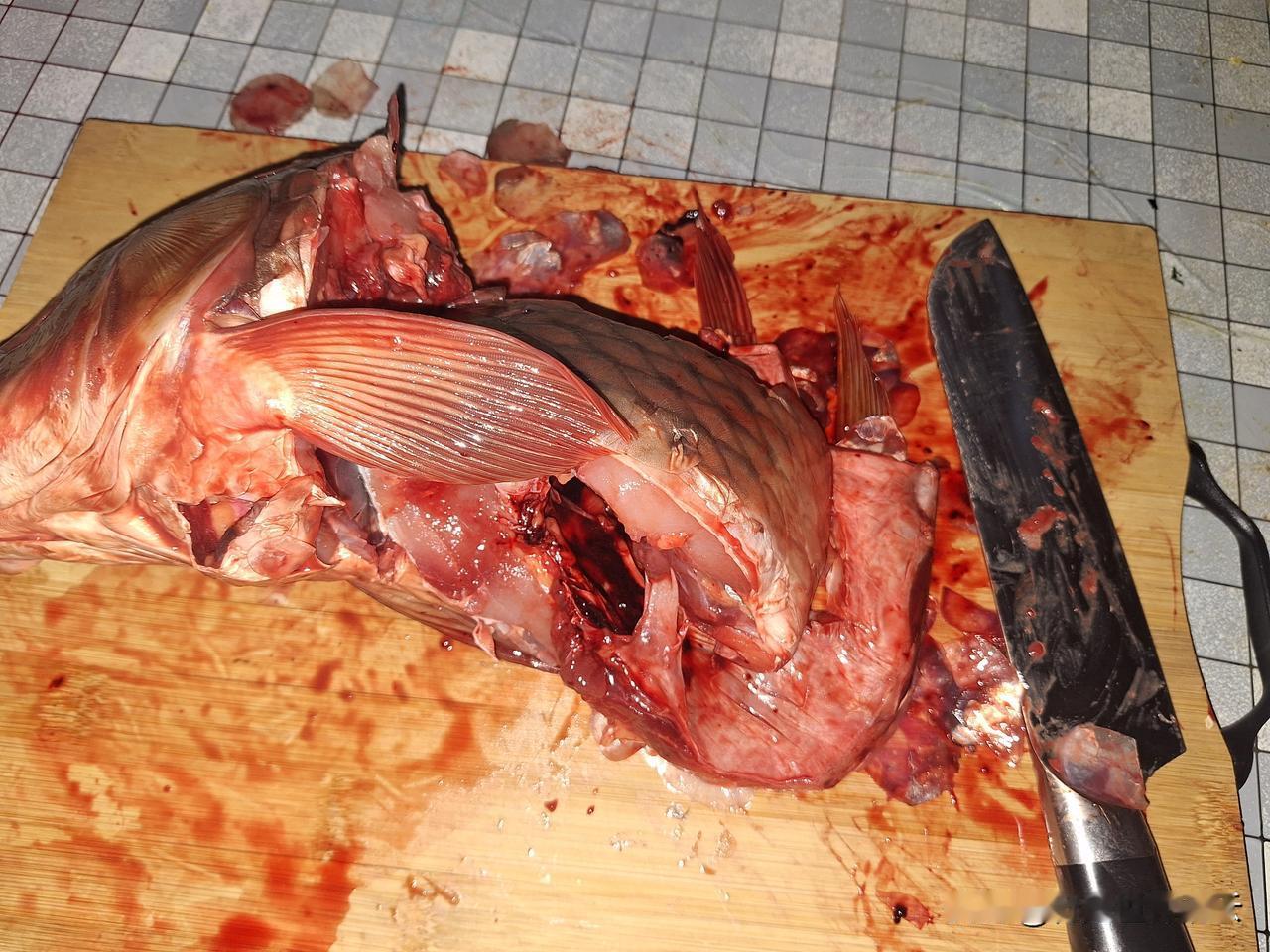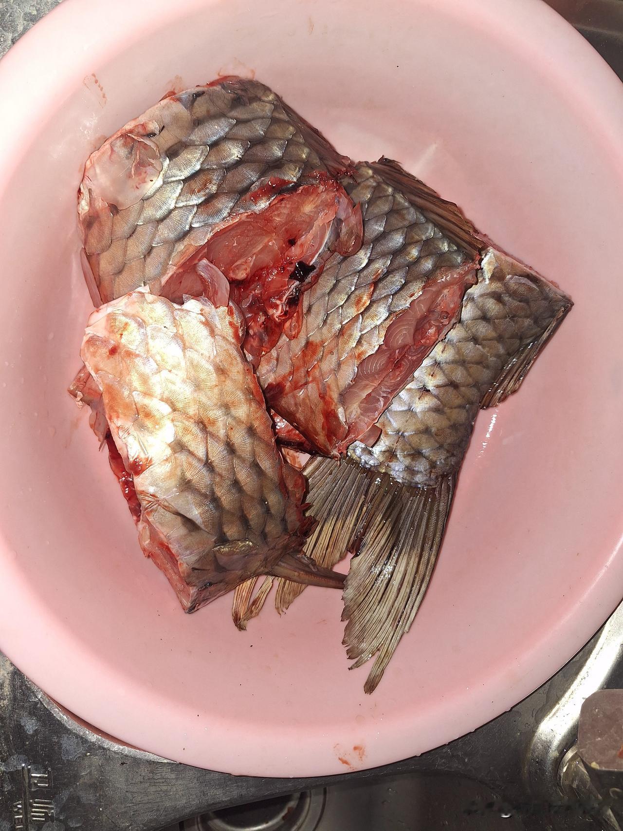 又下了一夜的雪,大早上来个庖丁解鱼。昨晚买了条冻鱼,零下十几度真跟石头一样硬。化