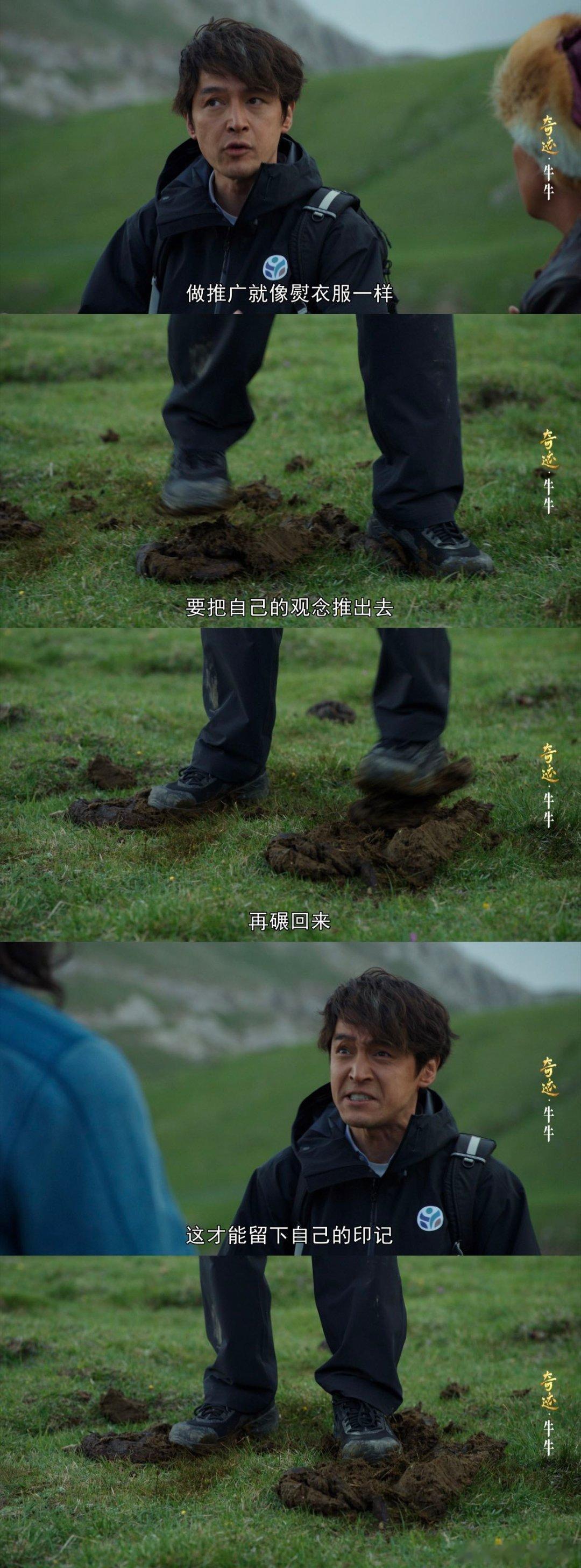 胡歌短剧首吻献给牛粪了《奇迹》一开播就给我笑发财了🤣首个单元《牛牛》就让胡歌和牛粪来了一次超绝亲密接触,就这么kiss kiss~😘老胡真是豁出去了哈,他饰演的张招远,为了在藏区推广牦牛惠民政策,不小心一脚踩进了新鲜的天然肥料,当场完成短剧生涯的首吻成就,场面又抓马又接地气,求他的心理阴影面积啊啊啊剧里笑点超级多,于适是他们中间的翻译人,叽里呱啦一通讲,张招远才get到了这只关键牦牛的名字翻译过来就叫牛牛,随意又搞笑,更有藏区居民的生活气息扑面而来,真实又温暖。总台首部原创精品短剧集奇迹