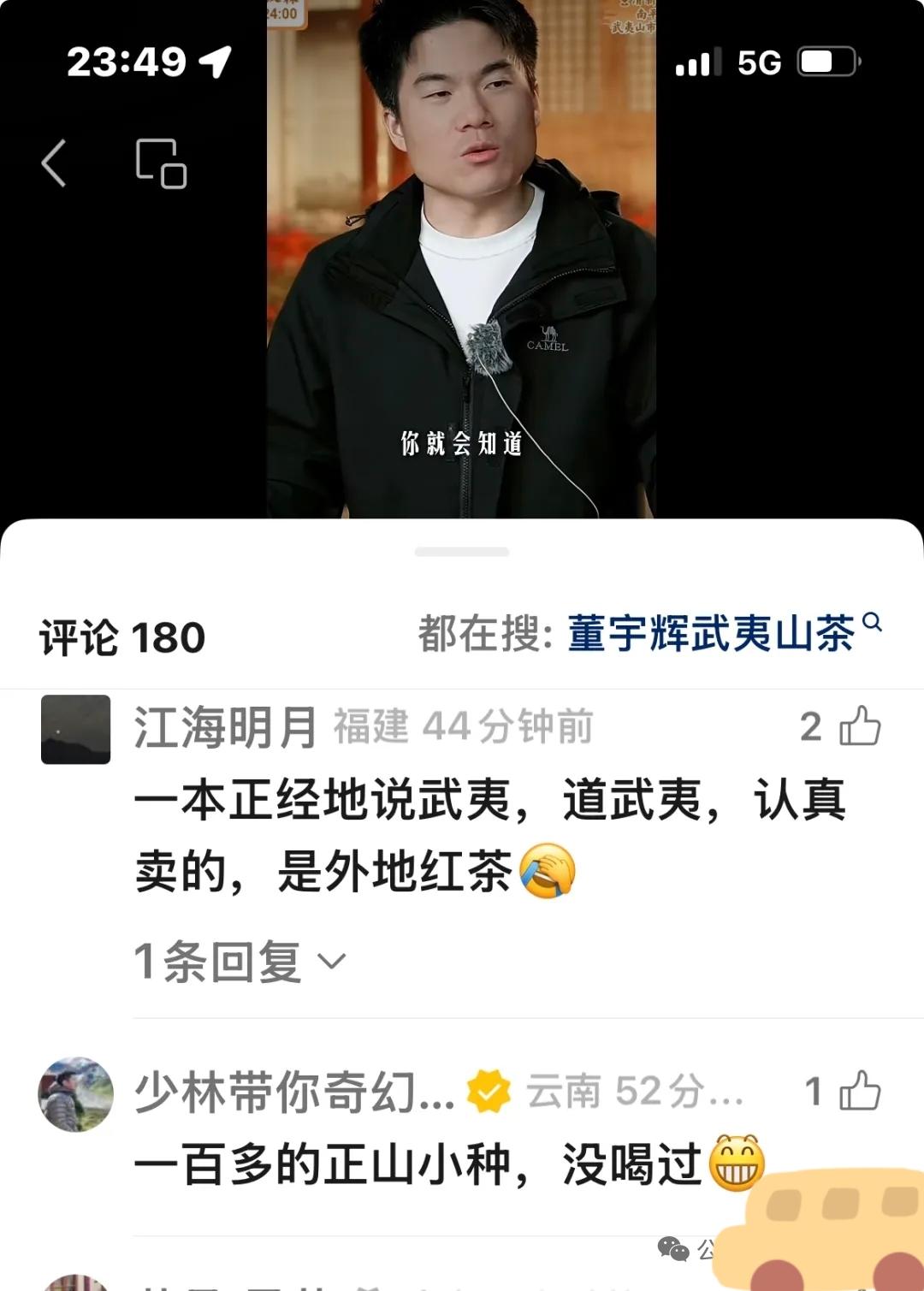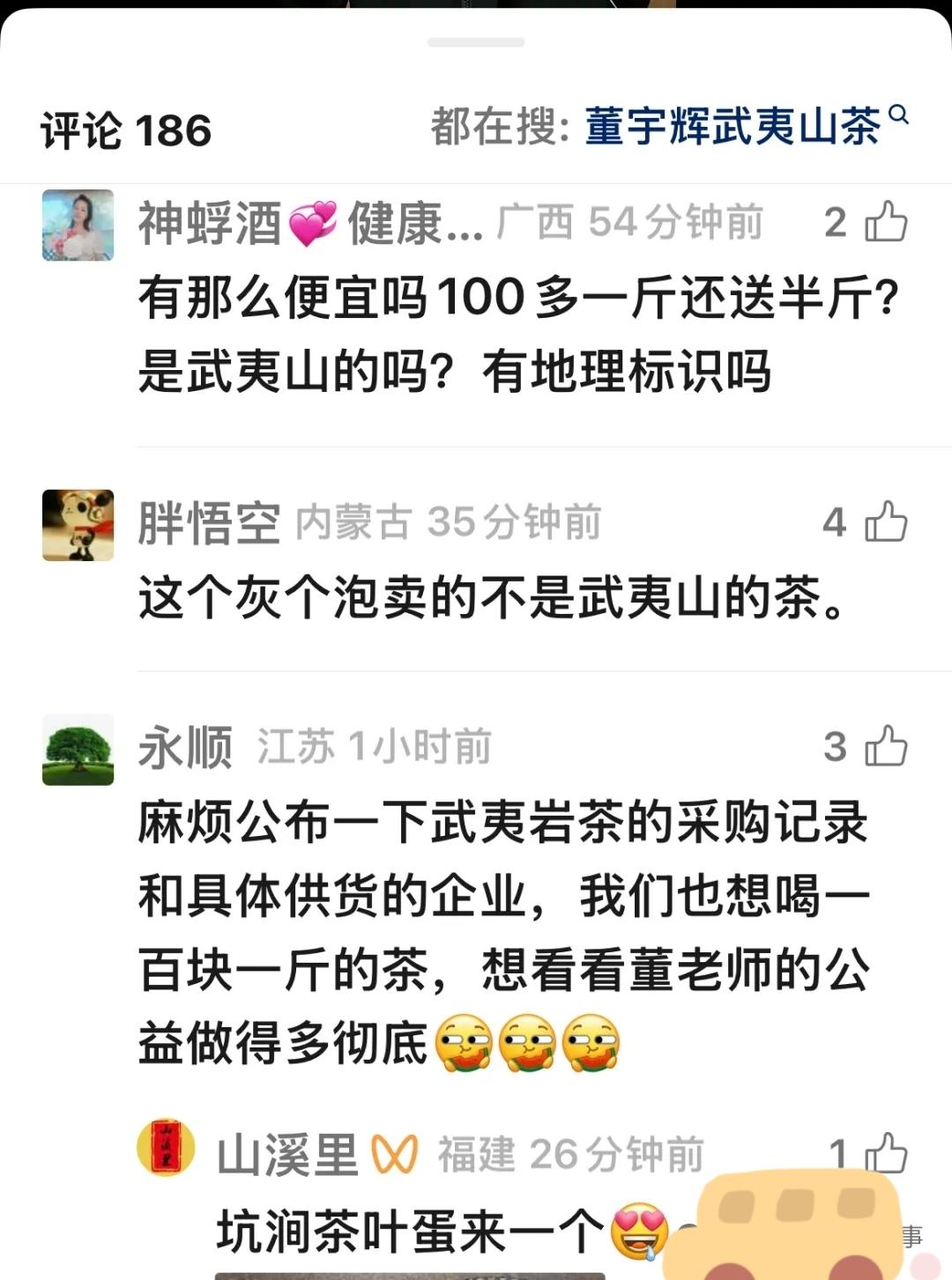 董宇辉的福建之行,为啥福建网友不买账啊?不是品控不行,也不是低价争议,关键是模糊了概念,混淆概念、张冠李戴这可不是小事啊! 董宇辉率“与辉同行”团队的福建之行,估计他自己也不会想到,会引起全网网友的争议,二中不同的声音吵的不可开交。 首先提出不同意见的竟然大多数是福建的网友,有人说福建网友不知好歹,给你们带货、替你们宣传,不感谢还自黑? 我没看直播,更没有从他直播间买过货。直播效果如何我不便评论,带货品质也不评论。只说下网友争论的焦点:为啥福建网友大多不买账? 首先肯定董宇辉的文采,带不带货的不太重要了,很多人觉得看他直播是一种享受。所以才有那么多的钻石粉追随他吧! 这次来福建也不例外,确实替福建文旅做了一次跟成功的宣传,这一点是值得肯定的。 直播带货的品类繁多也不好一一评论,毕竟无论是吃的还是用的,每个人感受不同、标准也不同,个人觉得喜欢就好。 我只说下他推荐的武夷山的茶,我特理解网上的那些争议,其实提出质疑的,可能不仅仅是茶商茶企,可能大部分还是普通的如我一样的资深茶友。 董宇辉直播间推荐的茶我相信品质没有问题,那个138的定价也是良心价,要是不太喝茶的新手,还是一款性价比很高的茶。 我个人觉得,争议的焦点,不是在茶的品质和那个亲民的价位,而是董宇辉混淆或者是错用了概念。 一个是武夷岩茶,这是一个有明确地域限制的概念,通常指代的就是单纯指武夷山景区内的茶,超过景区的茶都叫外山茶或者洲茶。真正这个范围的岩茶有一定品质保证的,我们本地即使直接从很熟悉的茶厂也拿不到138一斤这个价位的。 第二就是正山小种,这是一个受国家地理保护获得授权的产品,而真正正山小种是特指产自武夷山桐木村核心产区的一类茶,董宇辉直播间所售“正山小种”定价138元,虽然直播间也特意声明了非核心产区、核心边缘的口粮茶,既然是正山小种,必定是特定范围的核心产区的,你这一句“非核心产区、核心边缘”,完全是“此地无银三百两”。 既然是非核心产区、核心边缘的茶,那就不能冠以“正山小种”,只能是“小种”或者“烟熏小种”;要是你是正宗的“山小种”,就不能说是产自“非核心产区、核心边缘”。 不是说董宇辉不懂茶、不喝茶就不能卖茶,而是要明确概念,不能误导不懂行的消费者,不能张冠李戴让人误会了武夷岩茶和正山小种就这个行情和品质。 我不是茶商,我只是一个资深岩茶爱好者。请董老师明鉴,也请董老师的粉丝嘴下留情,有一说一。@董宇辉 董宇辉带团 武夷岩茶