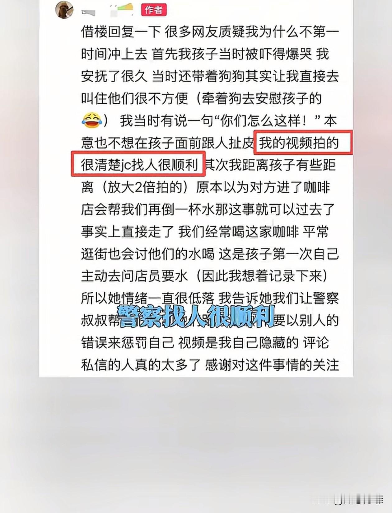 浙江,一小女孩端着店家赠送的水,小心翼翼地走向妈妈,结果被旁边路过的陌生女孩故意打翻,打翻女孩的家长只是喊了一声孩子,就直接带着孩子走了,没有任何道歉。 小女孩和妈妈一起逛街,中途口渴了,妈妈就鼓励她去路边的店铺讨水喝,小女孩进店后,礼貌询问店员阿姨可不可以给自己一杯水,阿姨很快就答应了。 小女孩开心地端着纸杯走出来,还兴奋地跟妈妈说:阿姨给我的。妈妈看见后也是直接夸奖女儿:嗯,你真棒! 结果话音刚落,一名穿粉色背心,年龄相仿的陌生女孩突然上前,故意伸手将小女孩拿着的水杯打翻,水洒了一地,小女孩不知所措,当场吓哭了。 更让人气愤的是,打翻水杯女孩的家长就在旁边,但她只是喊了一声孩子的名字,便拉着孩子扬长而去,既没有道歉,也没有安抚小女孩。 事后小女孩哭了好久,妈妈一直在安慰她。妈妈越想越气,把视频发到了网上,还报了警。 孩子犯错,家长的态度是最好的教养课,逃避责任只会让孩子学不会担当,太不应该。 小女孩好不容易鼓起勇气自己去讨水,刚感受到喜悦就被打破,无助的样子让人心疼。 还好小女孩端的是凉水,要是热水还可能会被烫伤,这种无缘无故动手的行为必须及时纠正。 孩子的行为是家庭教养的折射,家长当场该做的应该是先道歉,再教育,帮着处理,这才是给孩子立规矩。 小事不纠正,孩子会没边界感,以后更难担责,教养不是嘴上说,是遇事时的每一个选择。
