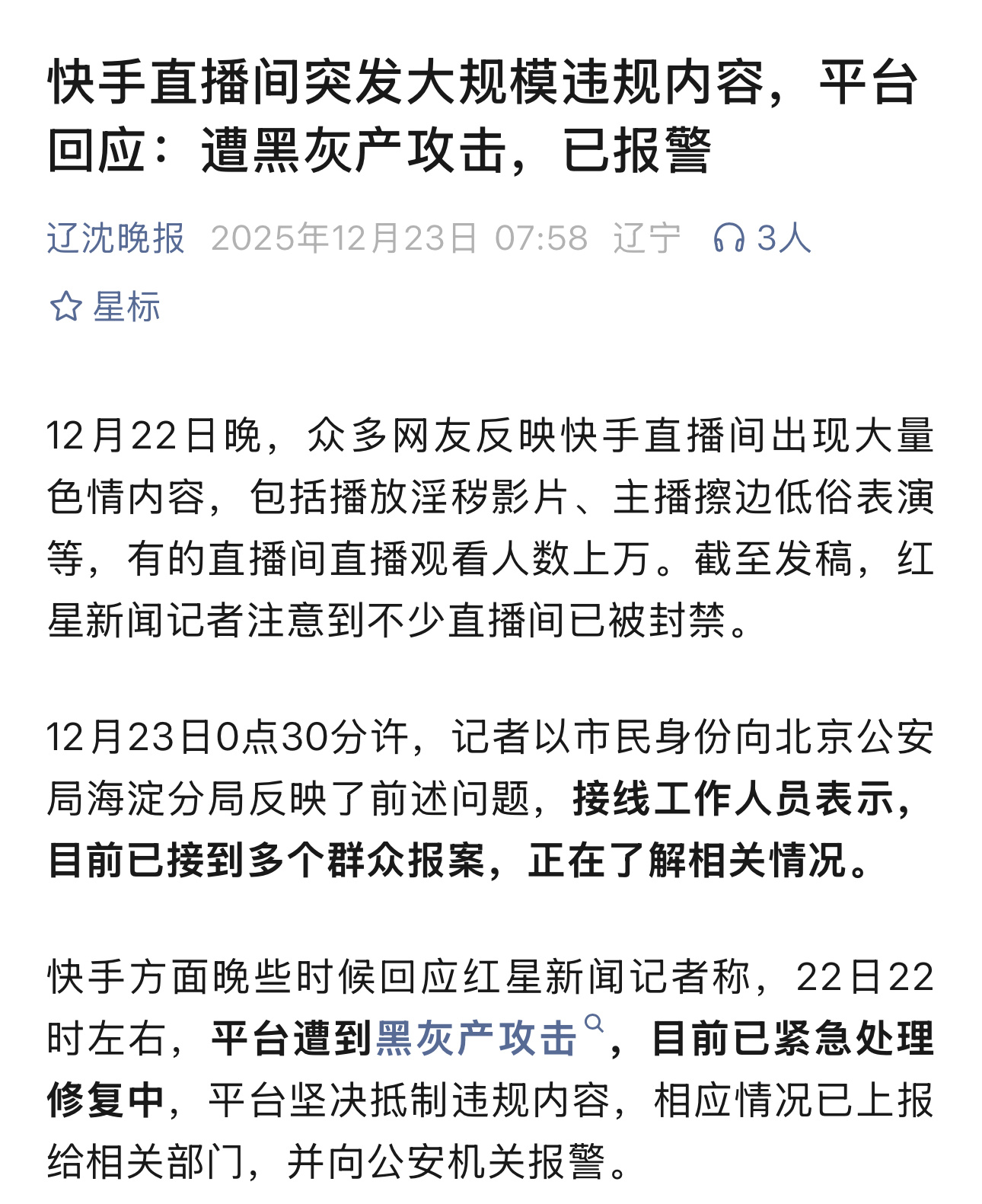 炸裂!快手遭遇黑产集中推流,直播间现涉黄内容,用户账号被推流违规内容!