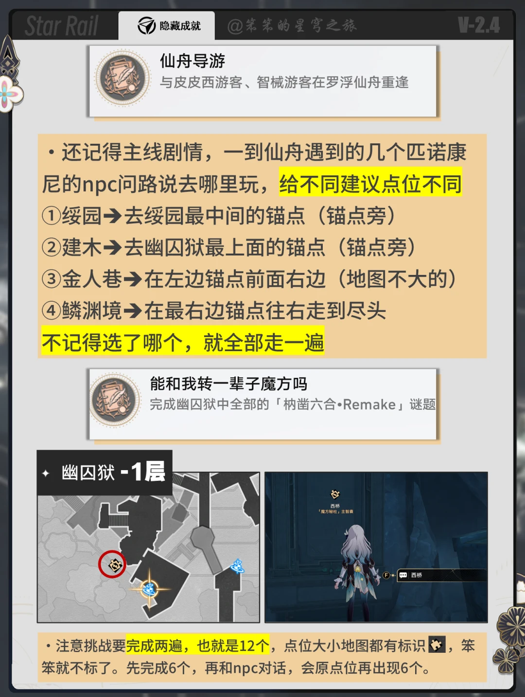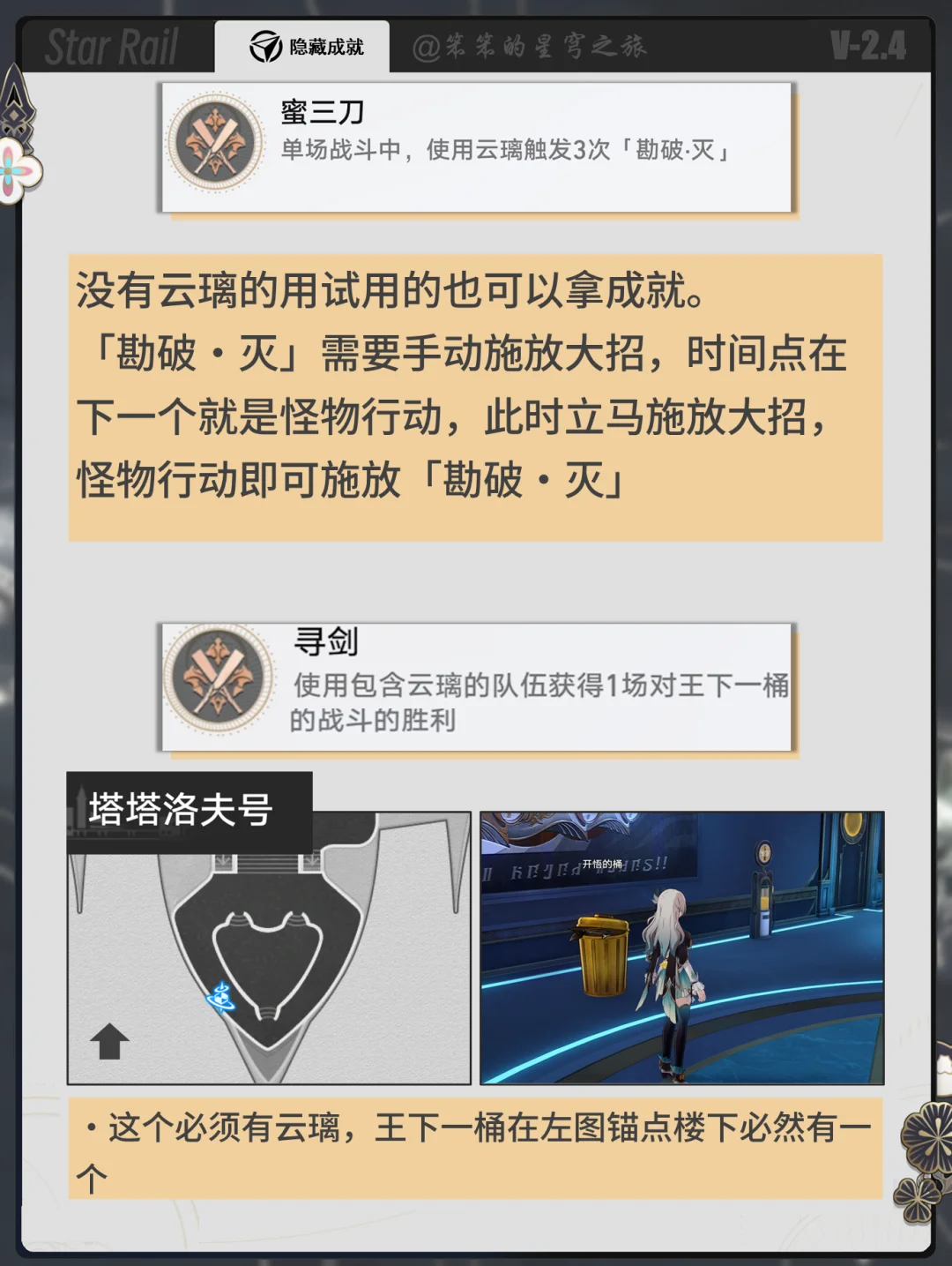 🐱大家好,我是笨笨的铲屎官 今天给大家带来的是2.4的隐藏成就 这个图文版本是包含了所有地图成就的 (主线,还有战斗成就未罗列) 上一个视频版本的成就只是罗列了一些带梗的成就 所以清成就的开拓者以本篇为主