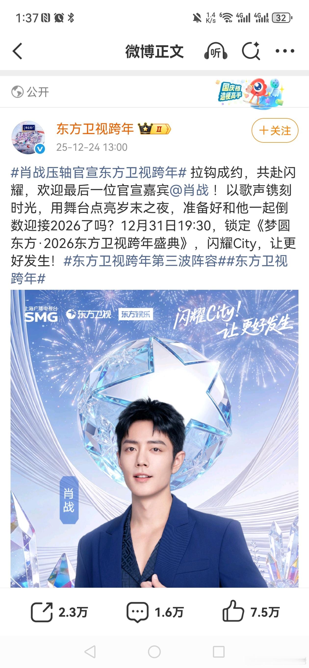 肖战压轴官宣东方卫视跨年 今年和谁一起跨年→肖战!!