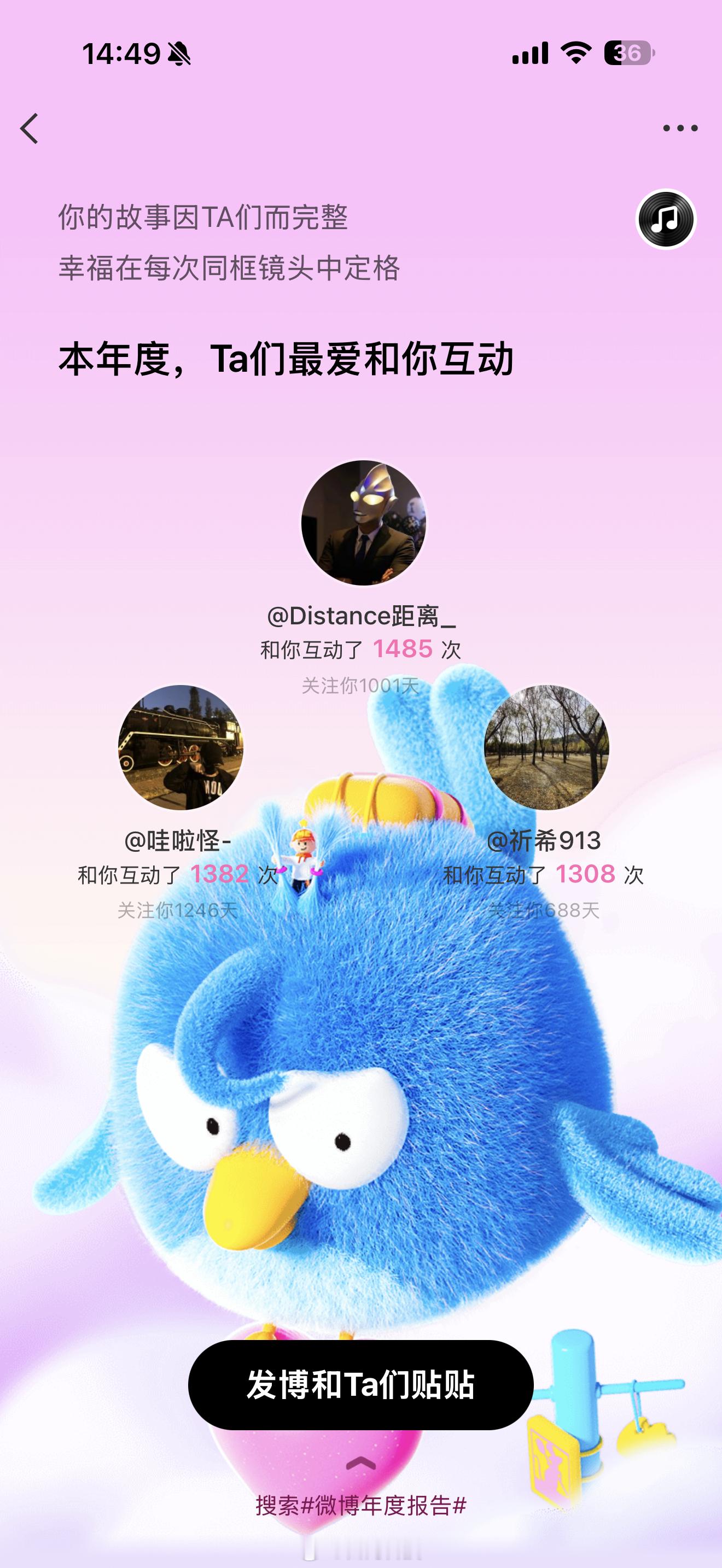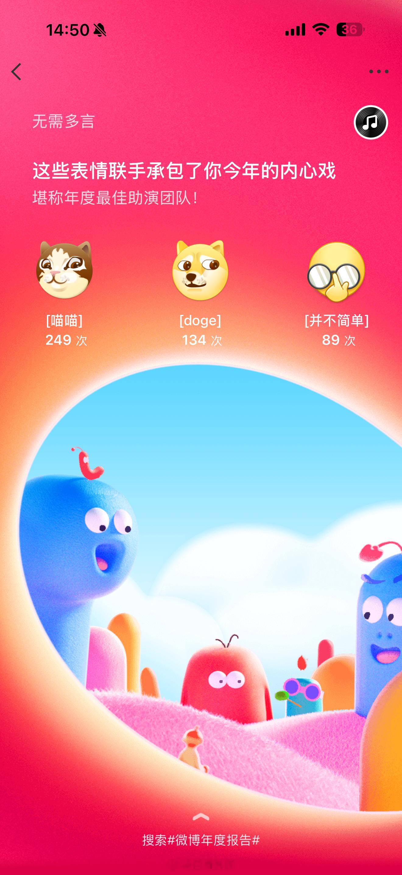 2025微博年度报告 出来了!年度角色:纯情霸总🌹年度表情:感谢这三位互动最猛的小伙伴,已私信小红包🧧感谢所有小伙伴的互动支持大家今年用的最多表情是啥?发到评论区瞅瞅