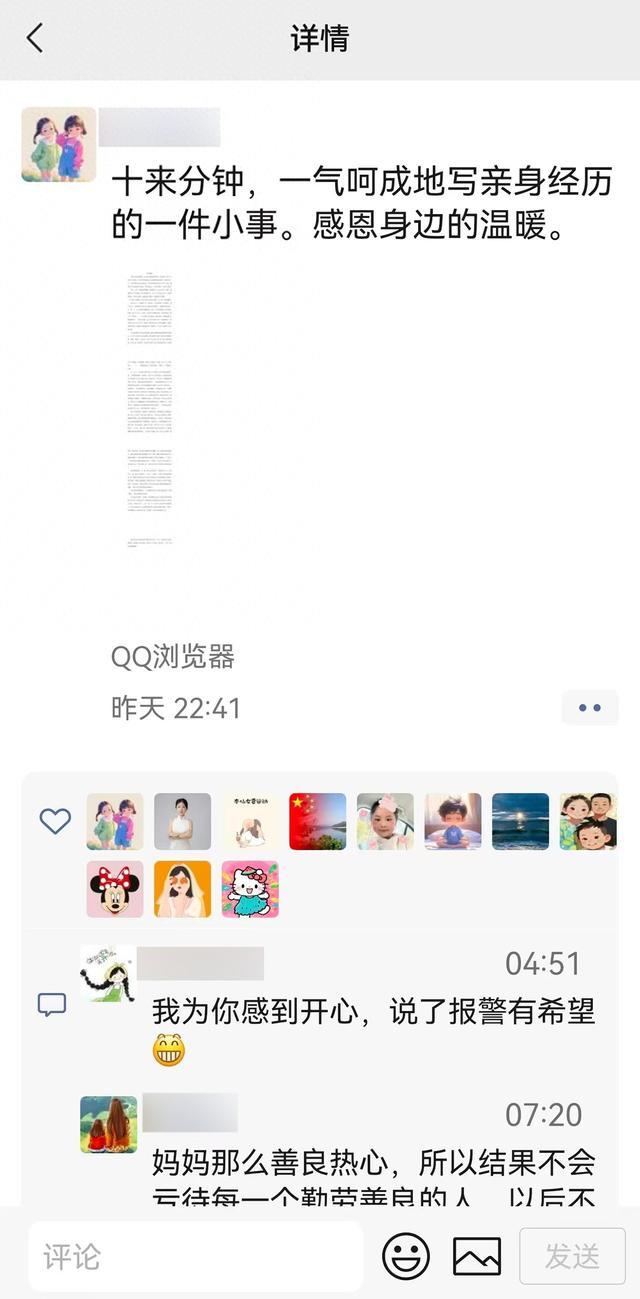 涂老师说,当她把这段经历讲给学生们听,也在孩子们心里深植下了一颗信任与正义的种子:“孩子们一片欢呼,说太飒了,长大了我也要做警察……”