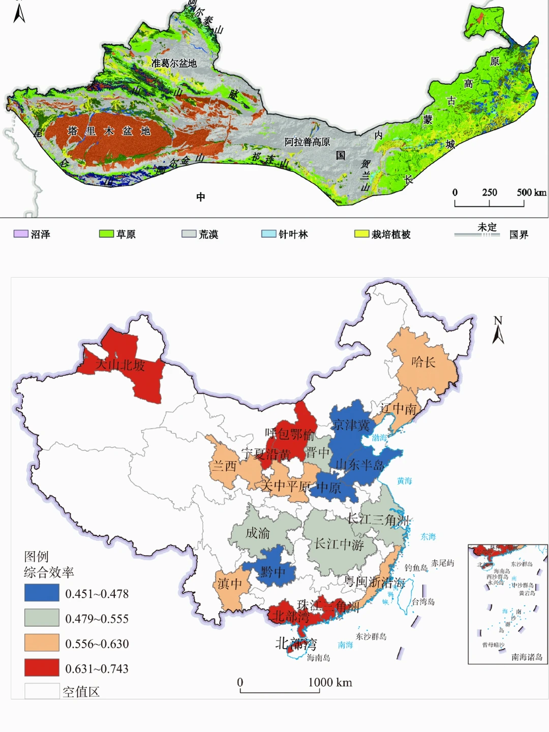 [三R]母质与成土过程 , 以原始过程和积盐过程为主;[四R]时间因素 , 年轻土壤居多。
