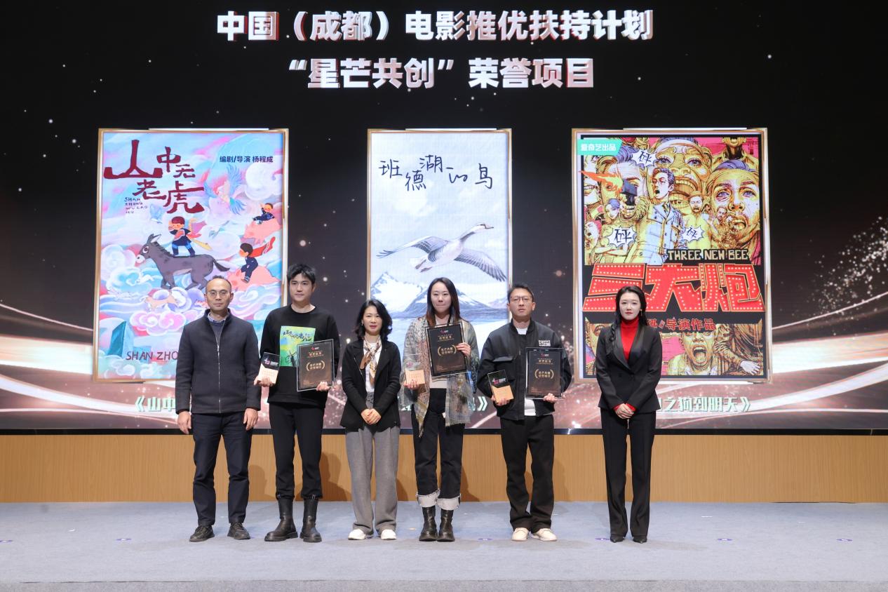 在活动现场,在中国电影制片人协会、中国电影评论学会、中国夏衍电影学会及多位影视名家组成的终审评审团共同评议下,10个优秀项目最终脱颖而出。《成都小子》摘得“光影领航荣誉”桂冠及20万元现金扶持;《三大炮之狗到明天》《山中无老虎》《班德湖的鸟》获得“星芒共创荣誉”及5万元现金扶持;《朱好好和她的姐妹们》《不可饶恕》《炸点》《人人都想吵一架》《后羿之英雄崛起》《风从海边吹来》获得“新锐启航荣誉”及2.5万元现金扶持。