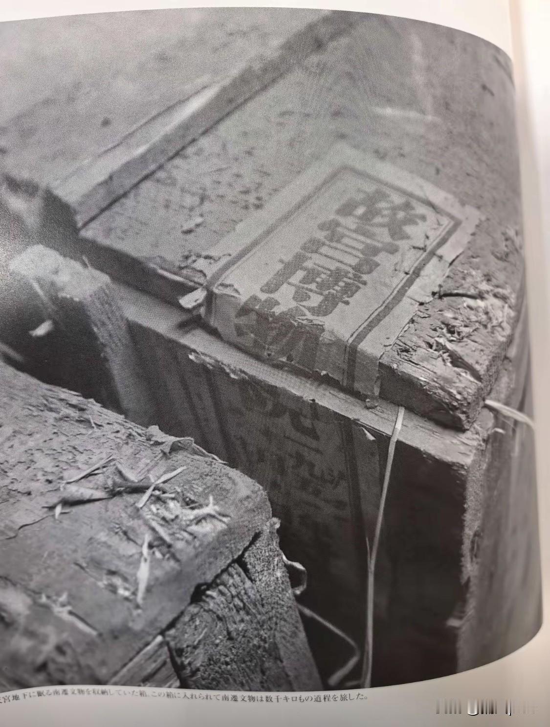 日本曾出版南京博物院所藏南迁文物一书,里面有仓库里南迁文物的保存照片,几十年的木箱子放在斑驳的地面上,箱子上贴有“故宫博物院”字样的封条。有的封条还完好,有的箱子的封条已经断裂,并有明显的开箱痕迹。意味着有人已经开箱过这些文物。 从照片来看,这些南迁文物依旧躺在将近100年前的旧箱子里,旧箱子木头边缘毛刺凸起,破损不堪,当时这批文物也是颠沛流离,从北京到上海,然后又到重庆,又到南京,行程几千公里。