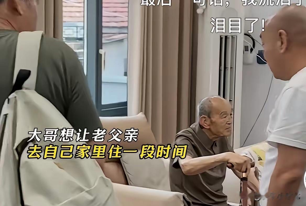 93岁的老父亲在小儿子家养老,突然大儿子接他出去玩,谁知,到门口时,老父亲哭着对