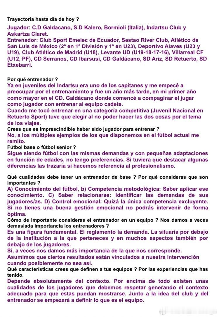 【挂帅/西乙】莱加内斯转正伊戈尔-奥卡鄙人极力推荐来中超试试的人,因缘际会迎来了首次西乙之旅。为什么要着重介绍这个人?因为这是鄙人从草根跟到职业的惟一一人。参见图2,这是他当年的部分专访,草根程度可见一斑。伊戈尔-奥卡在巴斯克大学攻读历史系,20岁前往意大利深造,转向考古学。在异国校园里,邂逅未来的妻子,迨至确定关系,定居女方家乡巴伦西亚。20出头的奥卡继续着学业的同时兼任U14主帅。这并非他首次扮演教练角色,早在18岁,身为Indartsu俱乐部队长的他就开始在训练方面倾注精力。在CD Galdacano,首次尝试以球员的身份兼职教练。此后,奥卡先后于比利亚雷亚尔、莱万特、马德里竞技、阿拉维斯四家俱乐部的青训体系从教,获得认可的他得到马德里竞技邀约,出任床垫工人卫星俱乐部,位于墨西哥的圣路易斯梯队教练。自此奥卡开启美洲之旅。2021年,加入西班牙教练伊兹梅尔-雷斯卡尔沃教练组,共同执教厄瓜多尔联赛的埃梅莱克(CS Emelec)。赛季战罢,跳槽该国新兴势力山谷独立,任职青训总监。2022年底,厄瓜多尔天主教大学发来邀约,奥卡首次以主教练的身份两项职业赛场。两个阶段的联赛战罢,30场联赛交出了12胜10平8负的答卷,赢得来年的南美杯门票。2024年4月,奥卡在错误的时间经手厄瓜多尔联赛的昆卡体育。彼时,正值俱乐部选举期,内部管理混乱不堪,6场之后便挂印封金而去。接下来的智利之旅可谓教练生涯至暗时刻。2024年7月,智利瓦奇帕托俱乐部宣布伊戈尔-奥卡成为年度第三任主帅。2023年联赛新科冠军在本年度表现判若云泥,深陷降级泥沼。奥卡执教的18场比赛,只取得6胜2平10负的糟糕成绩。南美杯1/8两回合0-2、1-6不敌竞技(阿根廷)到也罢了,智利杯1/8为乙级俱乐部5-1屠戮,被球迷视作队耻。2025年3月,倦鸟返巢的奥卡来到塞斯陶河,12场西足协甲4胜4平4负,未能达成保级目标。结束塞斯陶河的合作,作为比斯开人的奥卡意料之外的远赴南马德里,挂帅西足协丙的莱加内斯B,执教第五级赛事。上调一线队之前,战绩6胜5平1负,位居小组第4。帕科-洛佩斯离任,美资决定对于联赛18的位次不在挣扎,由B队主帅奥卡转正,执教至赛季结束。