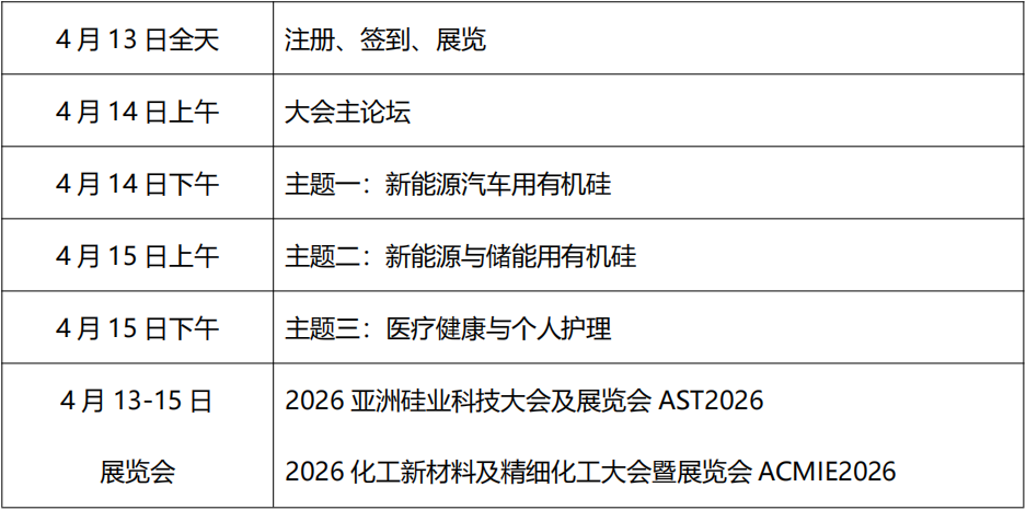 “十四五”规划纵深推进,新能源汽车、新能源、储能、医疗健康、可穿戴设备、个人护理等战略性新兴产业快速发展,正重塑全球产业链格局。作为不可或缺的关键材料,有机硅正迎来技术爆发与市场应用的“黄金时代”。新场景催生新需求,把握产业脉搏、抢占技术制高点成为行业共同关注的焦点。为此,我院拟定于2026年4月13-15日在苏州举办“2026(第二十八届)有机硅精细化学品技术交流会”,设立“新能源汽车用有机硅、新能源与储能用有机硅、医疗健康与个人护理”三大热门主题。