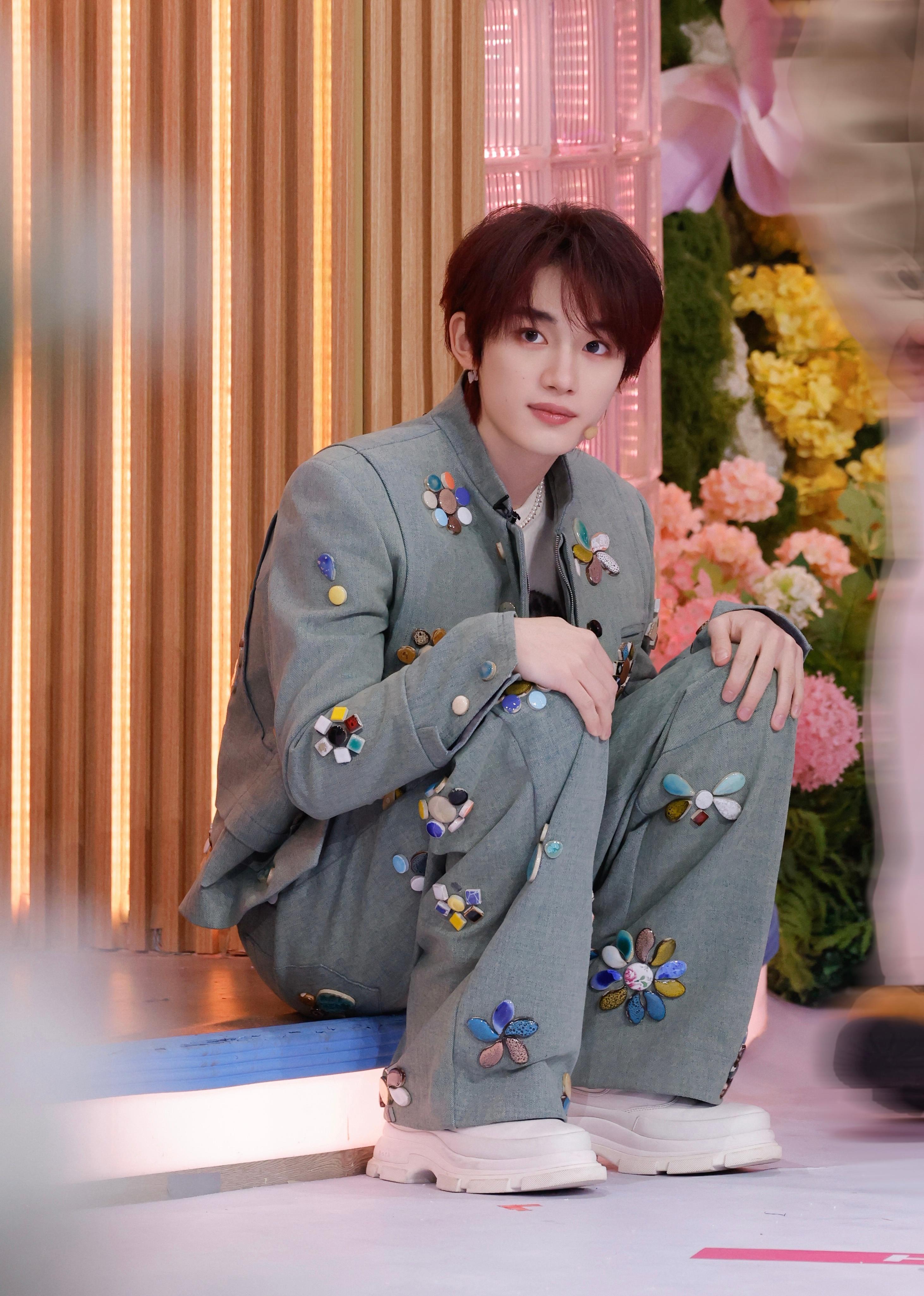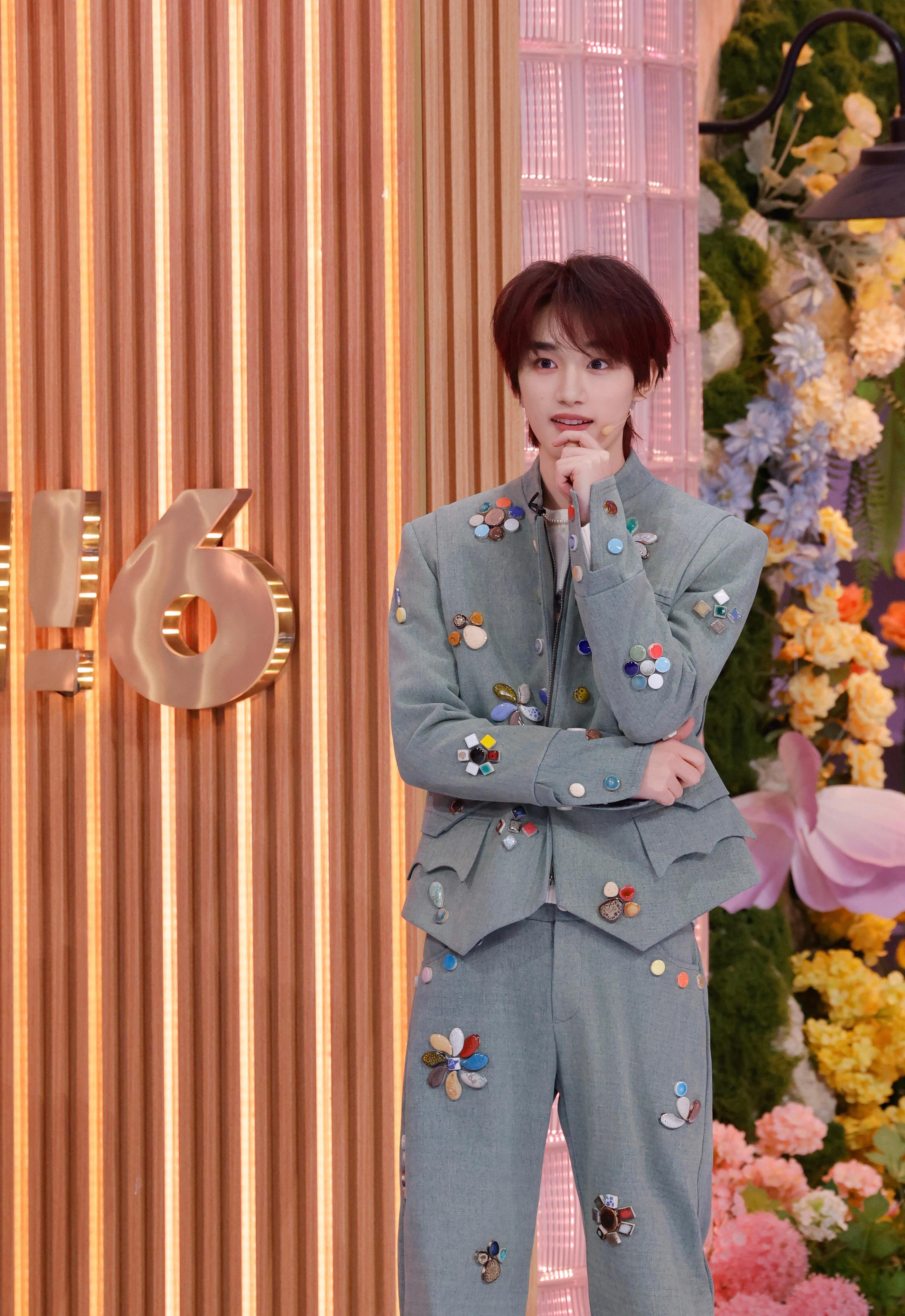 丁程鑫今日《hi6你好星期六》节目Look 🈶 上身Maggie Wang 2026春夏系列彩色宝石拼贴双层夹克套装,佩戴TASAKI塔思琦珍珠项链,这套让帅气丁哥穿的是相当漂亮~风格大赏|时尚头排客