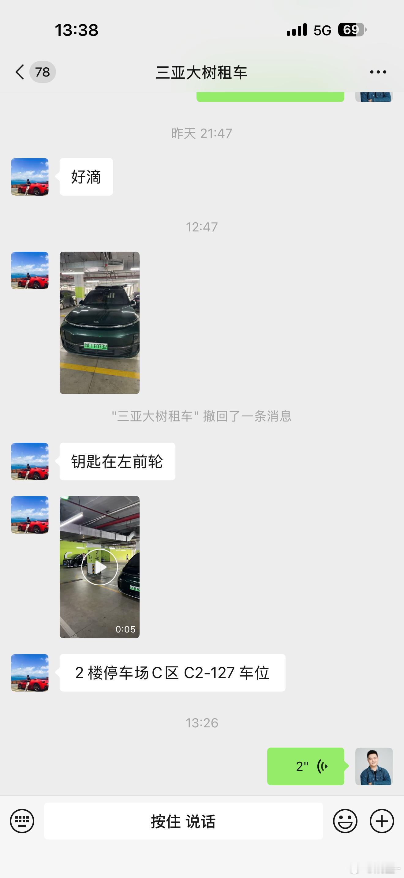 到三亚了,感谢但是车怎么就放停车位了,你送车的员工呢