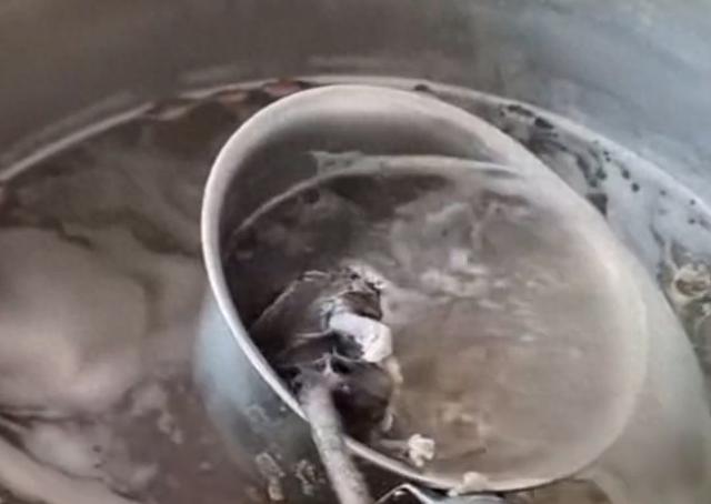 12月25日,广西百色一网民发布视频称,在外吃早餐时遇到“大惊喜”,他在加汤时从店家锅中捞出一只疑似老鼠的动物尸体。