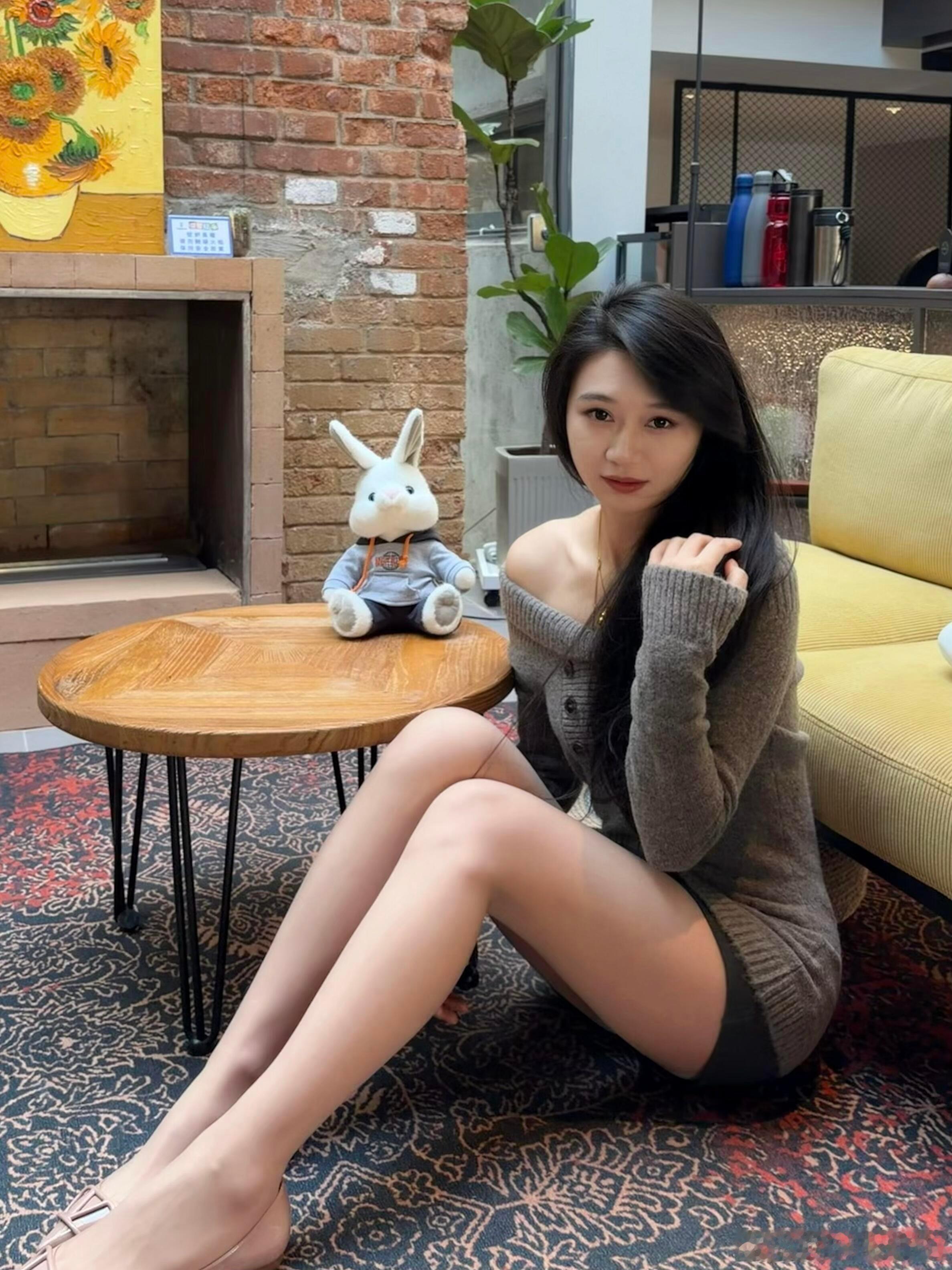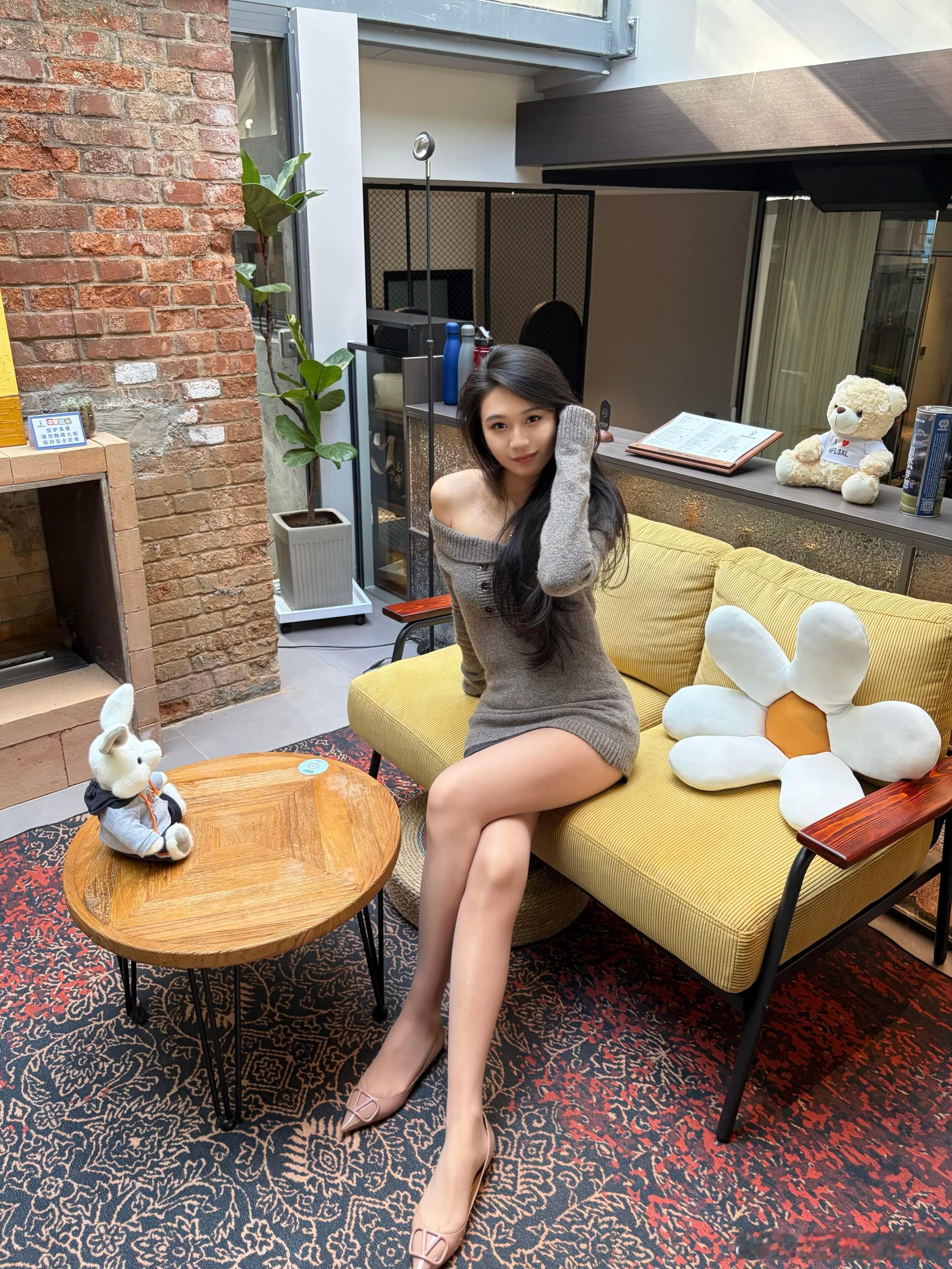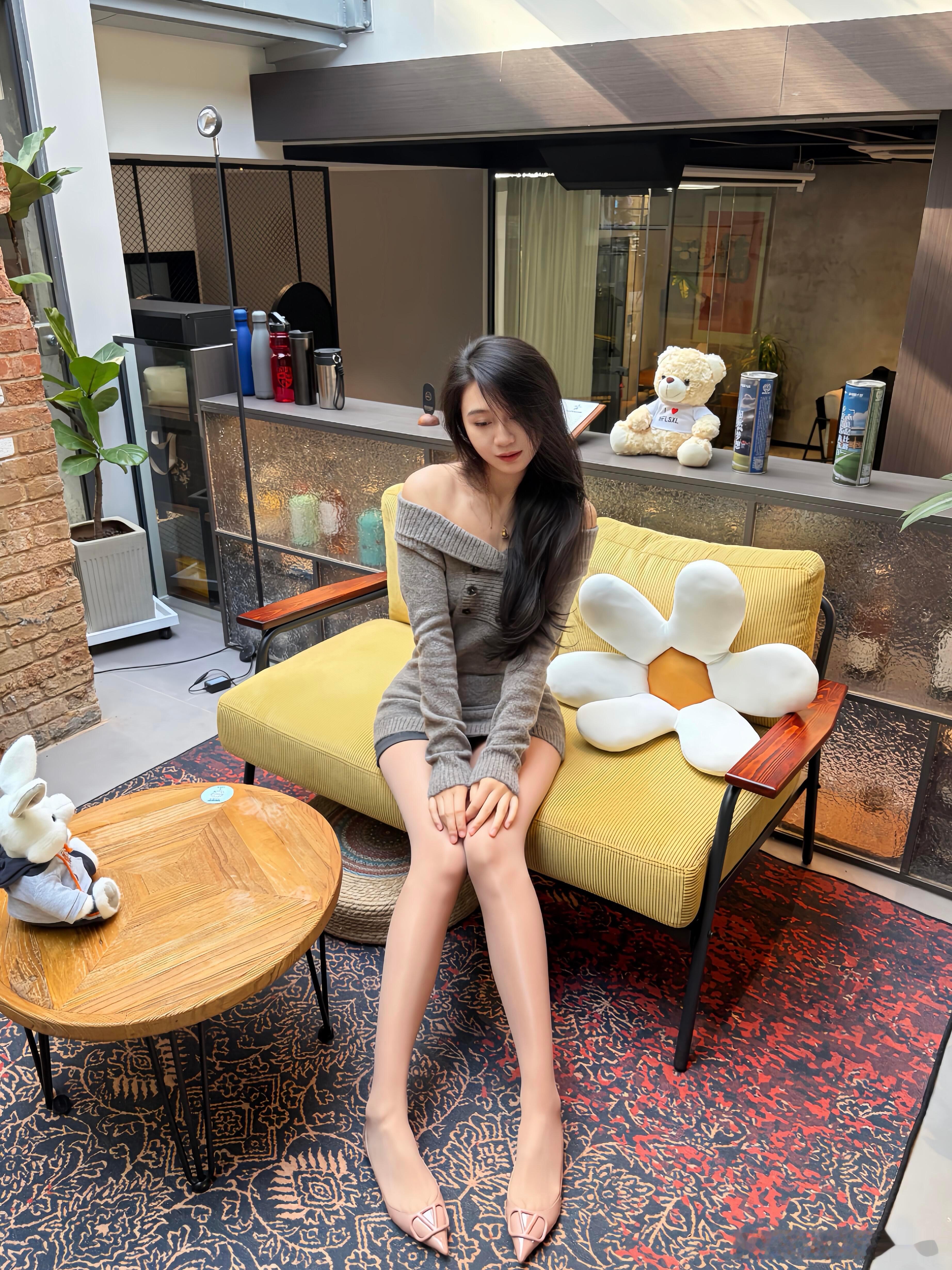 今天穿什么 一字肩小毛衣,超薄肉丝,粉色高跟鞋美女绘梦长廊