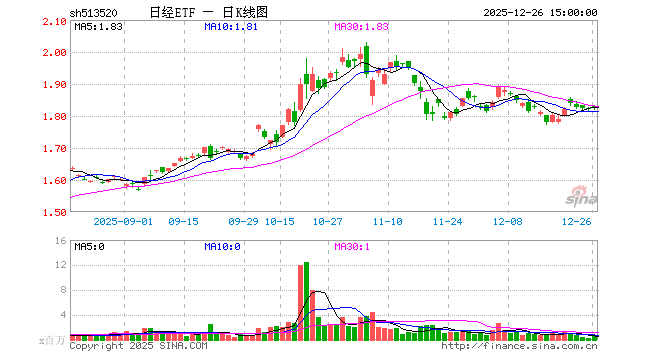12月26日,日经ETF(513520)涨0.11%,成交额1.11亿元。当日份额增加50.00万份,最新份额为9.99亿份,近20个交易日份额增加1000.00万份。最新资产净值计算值为17.66亿元。