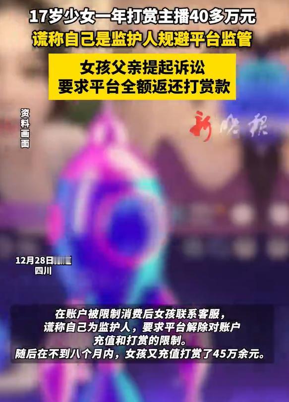 17岁少女1年打赏主播40多万元,这背后最大的责任其实是父母,其次是少女本人。 直接把孩子的账号绑定到17岁少女的账号上,任由其消费,且一年的时间都没有发现,一方面说明家里不缺钱,另一方面也说明父母对于子女的监护责任不到位。 这是因为未满18周岁,所以法院判退还24万,如果已满18周岁呢?结果可能是连24万都没有退还的法律依据。因为成年人要为自己的行为负责。 少女的责任是因为冒用母亲之名,在平台核实时撒谎,45万不是小数目,能够动用父母45万打赏,一是胆子够大,二是家底厚。 其实,作为父母平时还是要对子女多一些关心关爱,别等出了事儿以后再亡羊补牢了。