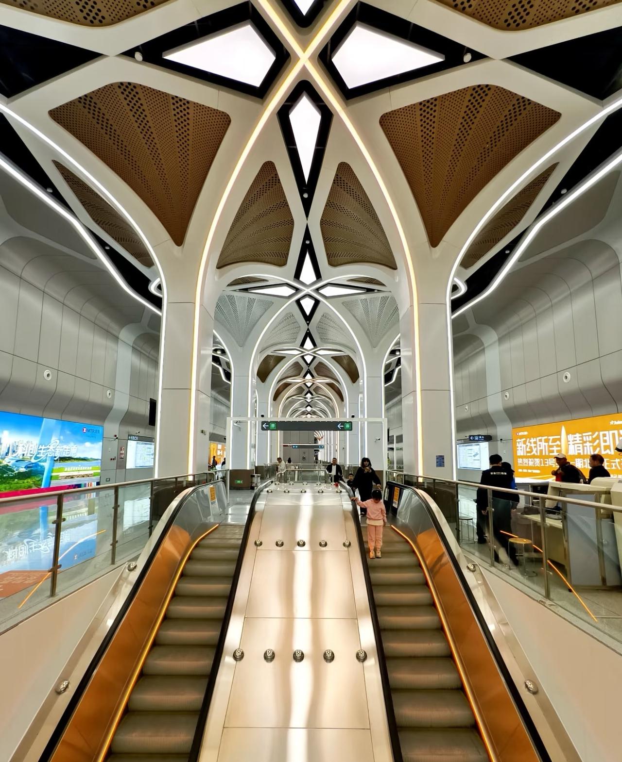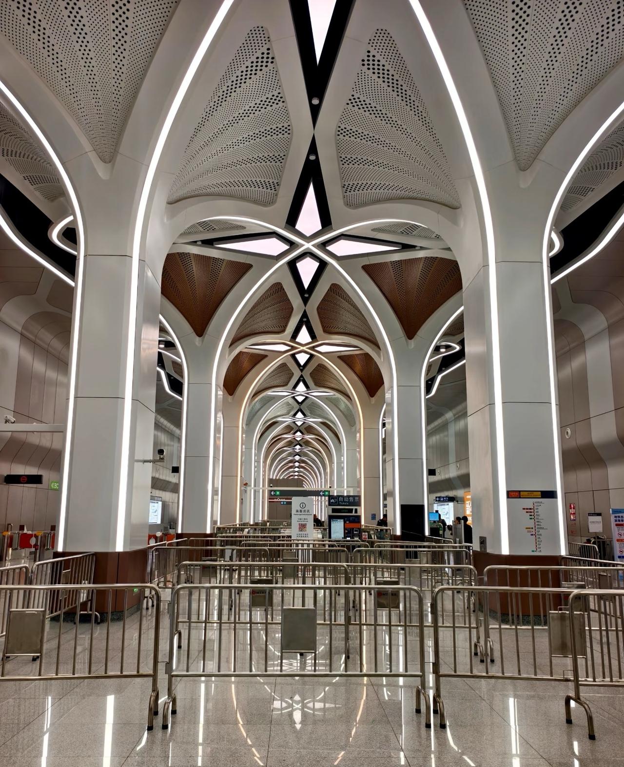 深圳新开的石鼓站也太美了吧! 🚇 车站亮点必看 以无人机为设计灵感的科技风车站!立柱像“科技之树”,金属质感装饰超出片,换乘间隙都能拍一组赛博朋克照片。