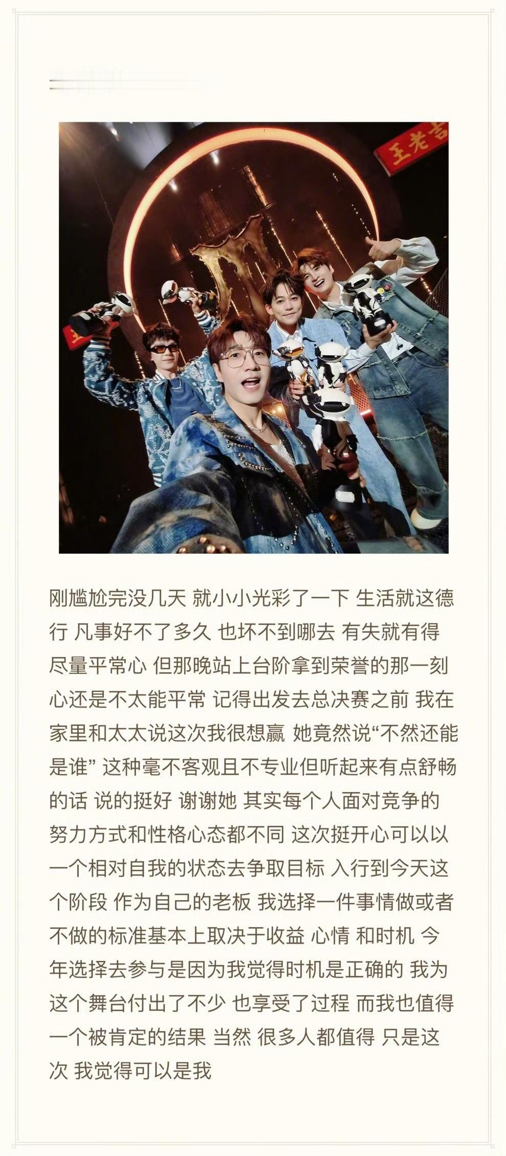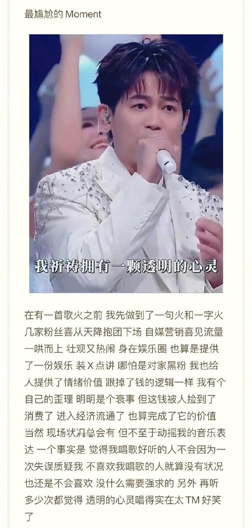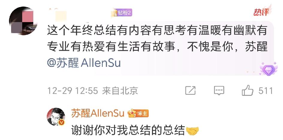 苏醒的年终总结写的不错, 就像评论区说的, 有内容有思考有温度有幽默有专业有热爱有生活有故事! 看了这个总结,才知道他的痛风原来这么严重,怪不得回国第一场演唱会看起来那么痛苦,脚肿成这样也能唱跳不容易! 还有他对梅西的热爱,甚至于超出了他对于音乐的热爱,仿佛音乐只是工作,养家糊口而已,看球才是他人生乐趣! 一次演唱的失误成了永久的烙印,他很通透,喜欢他的人不会因为一次失误就放弃他,不喜欢他的人不会因为没出状况就变得喜欢他,一切随缘! 这一年里他最在意的两个节目,一个全员加速中最后一期惜败,一个披哥最后夺冠! 他的老婆辰辰真是他的知己,两个人好像,都是高情商的! 杭州大莲花的合体演唱会,感悟很多,三年了,像一场大梦,这场美梦还会有多久?苏醒美照