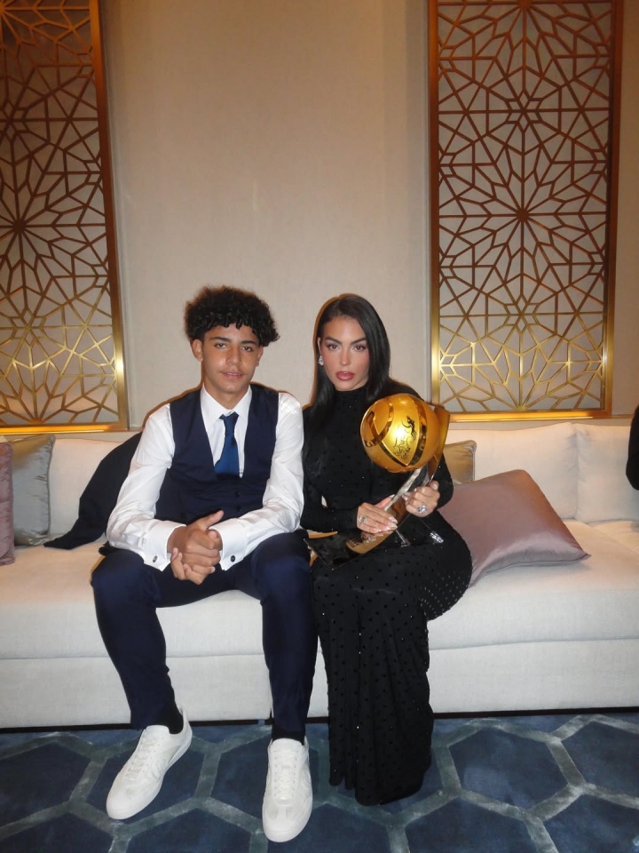 乔治娜晒出了一家人身穿正装出席颁奖礼的照片,。
