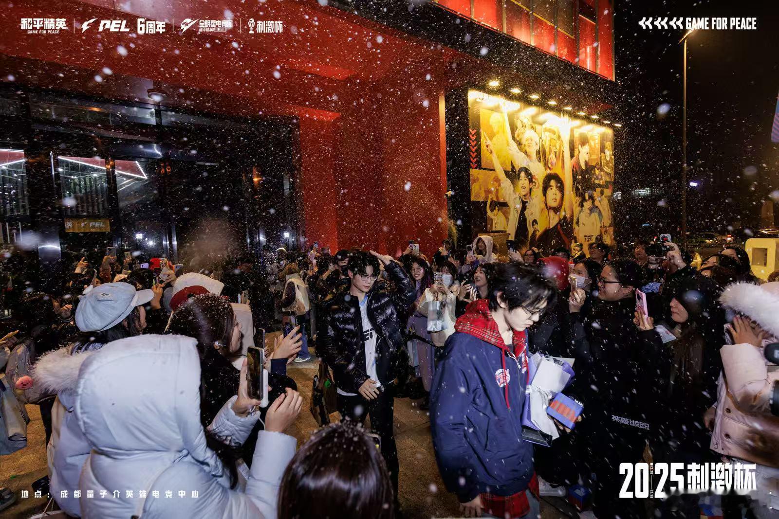 听说,雪是天空写给地面的情诗。而今晚,这首诗的收件人是所有在量子介电竞中心外守候的人。成都的第一场雪是PEL下的